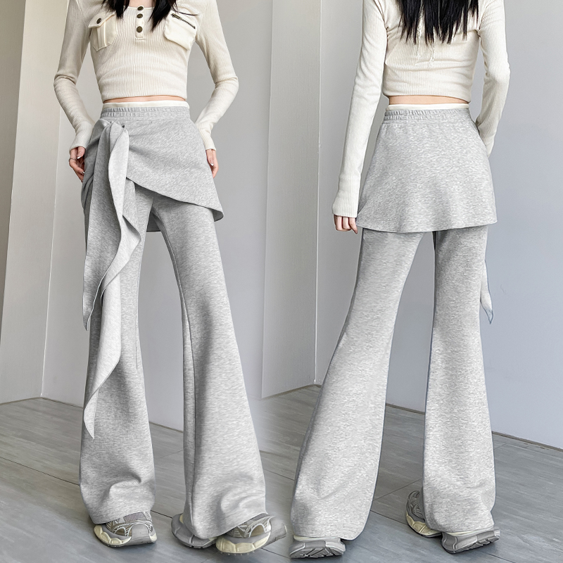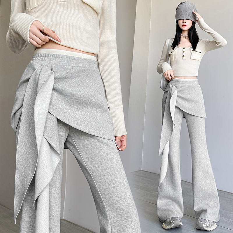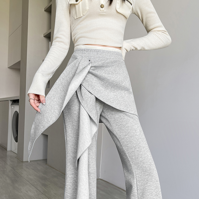 FA56146# 假两件美式辣妹弹力微喇裤女春夏新款高腰显瘦韩版休闲裤潮 服裝批發女裝批發服飾貨源