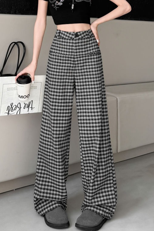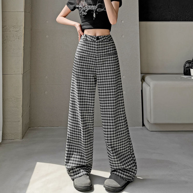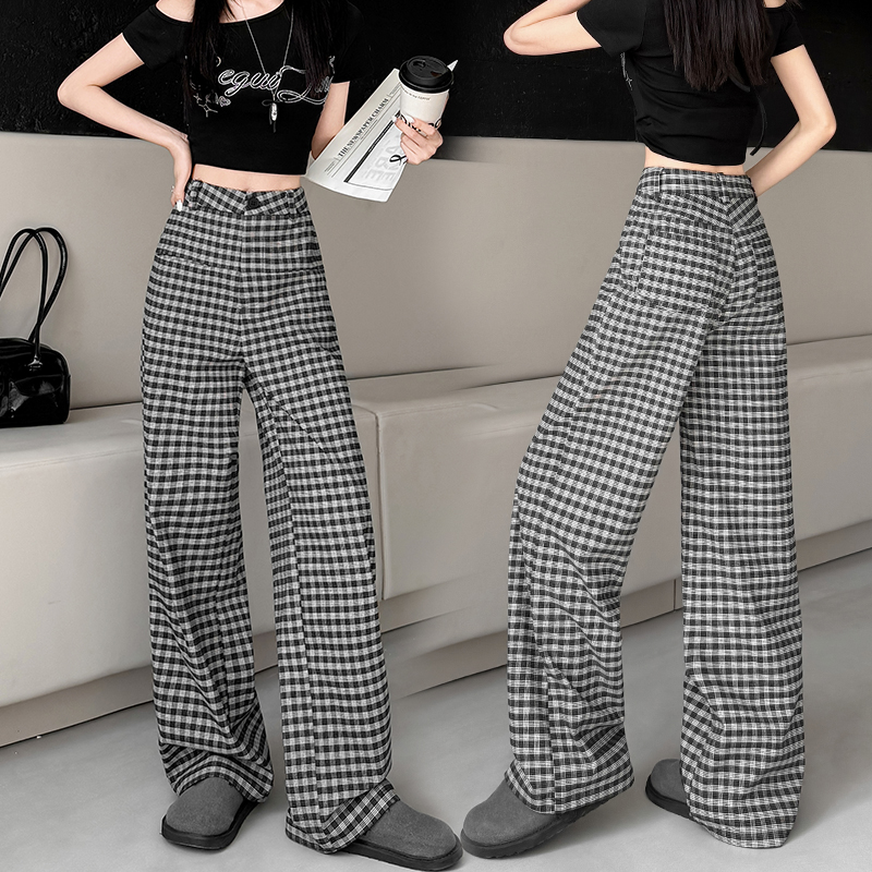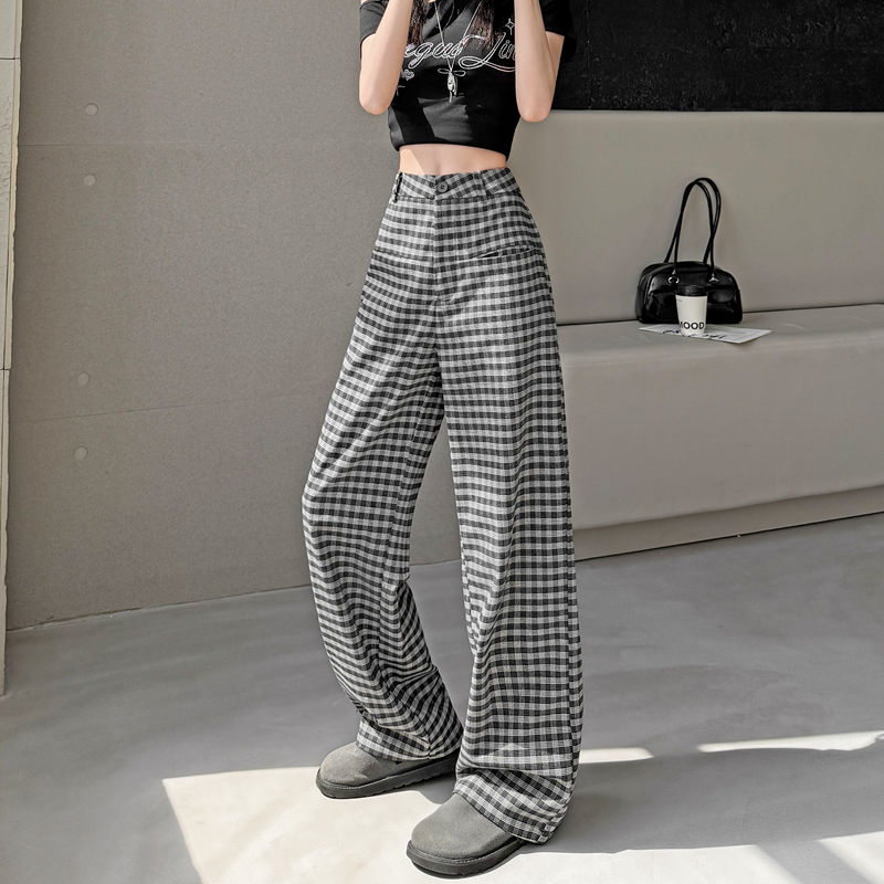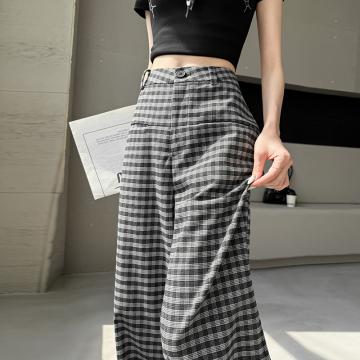 FA56147# 春夏季新款格子阔腿裤高腰垂感韩版显瘦休闲裤直筒裤子女 服裝批發女裝批發服飾貨源