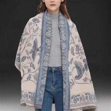 YF6909# 图片色秋冬波西米亚风提花刺绣腰果花图腾仿羊绒柔顺披肩空调房外搭