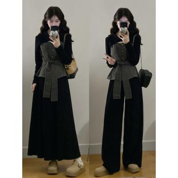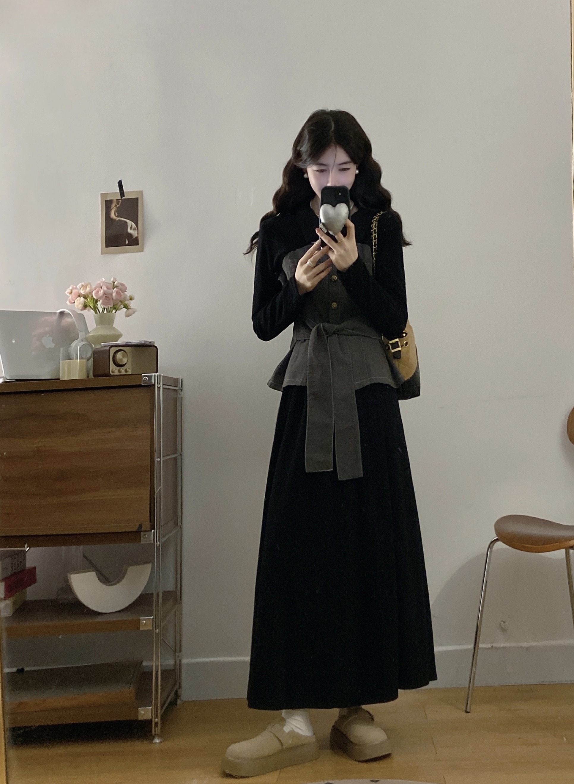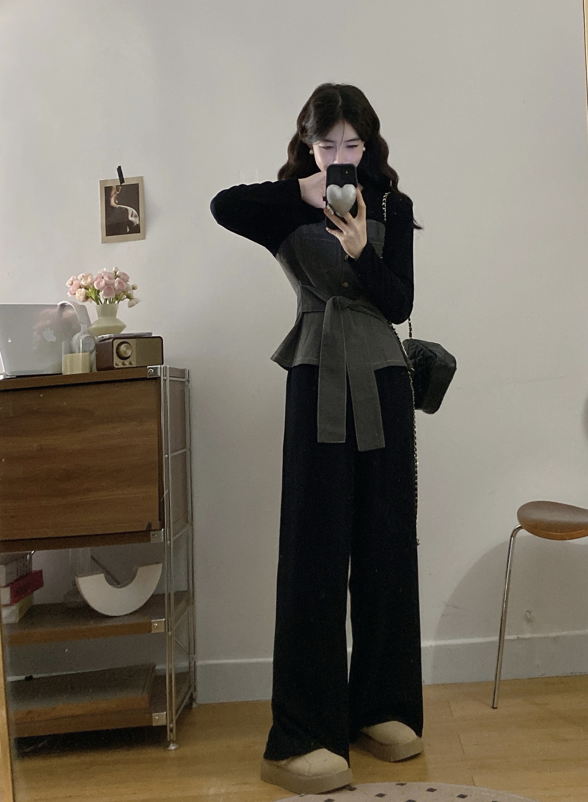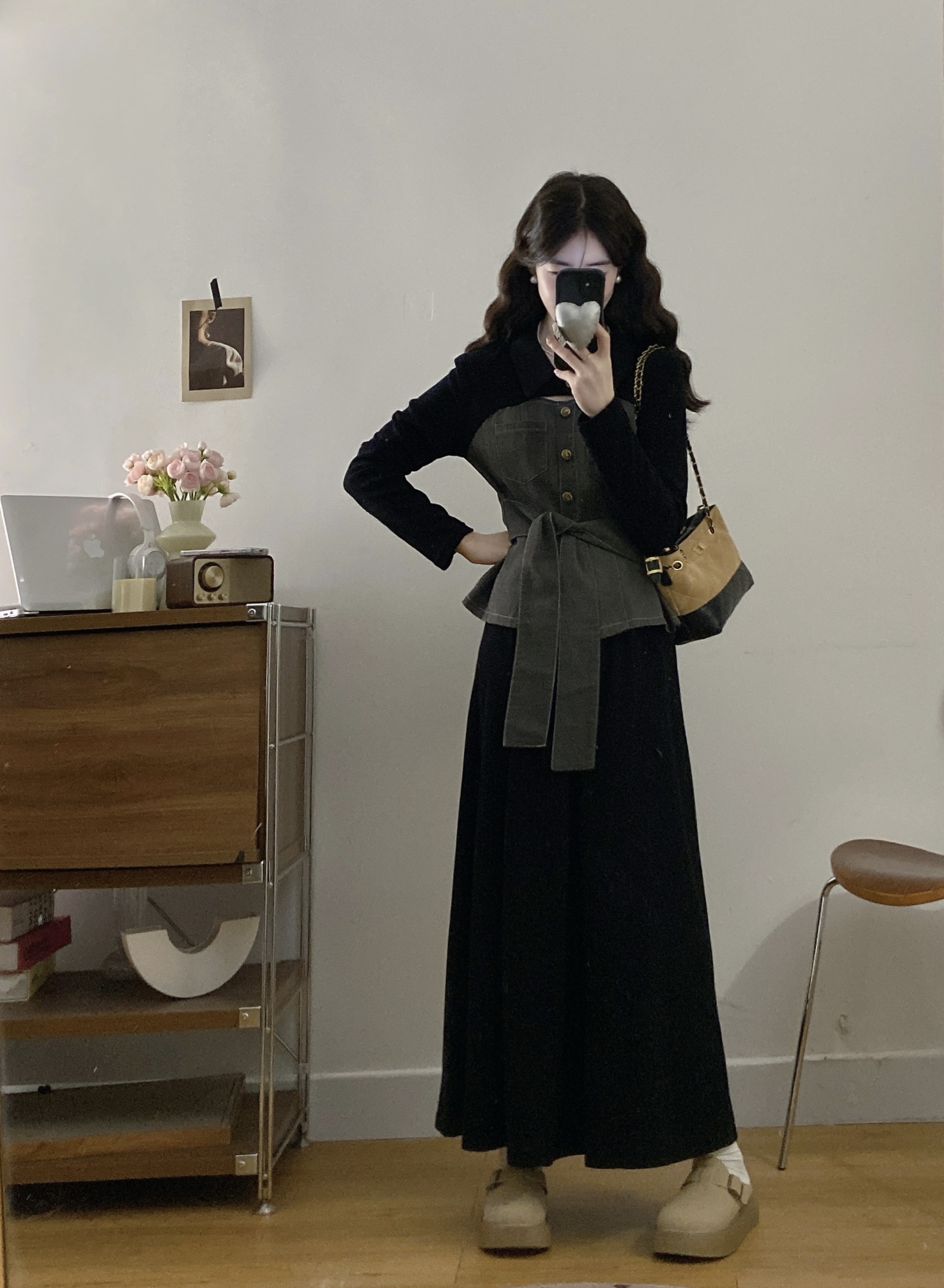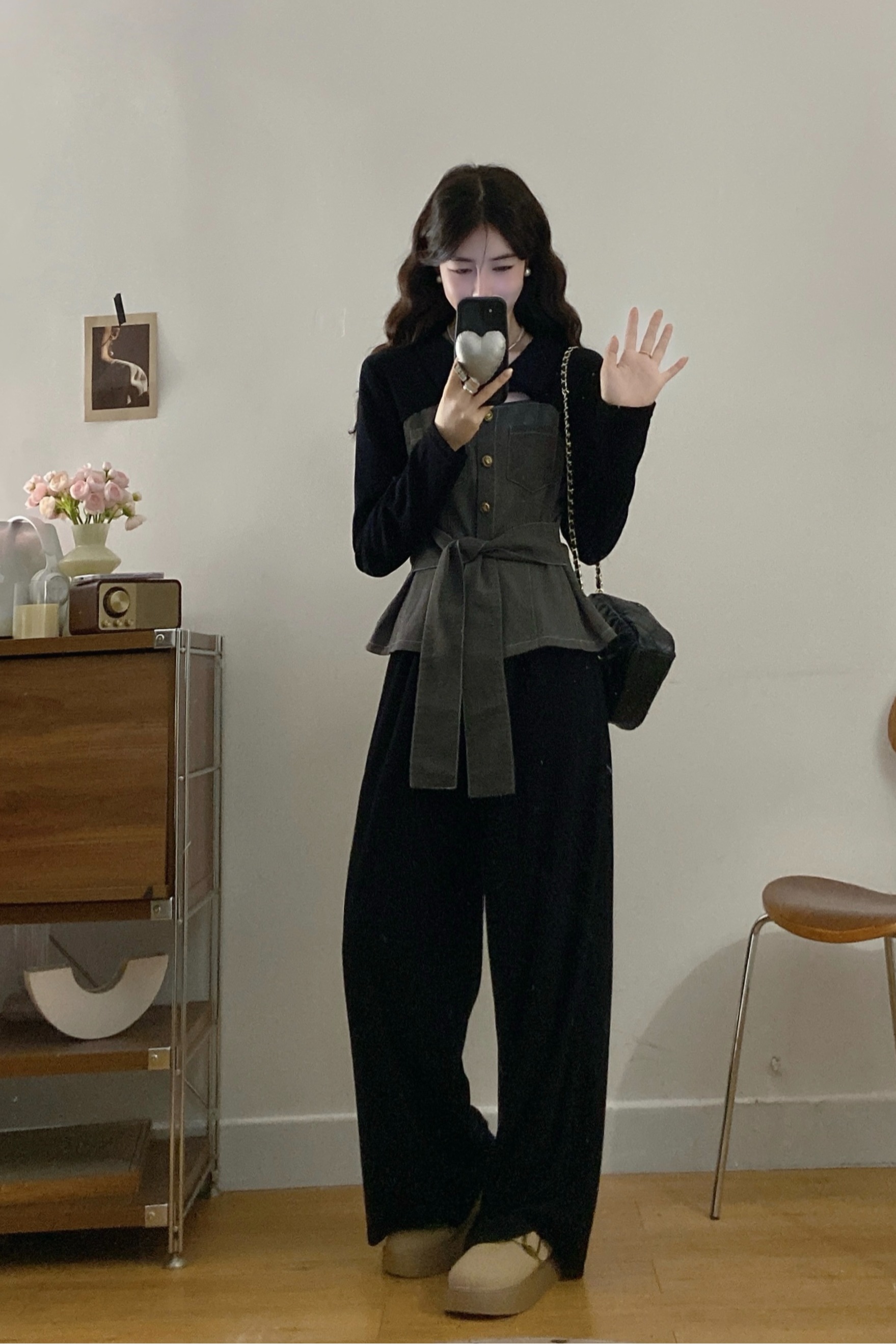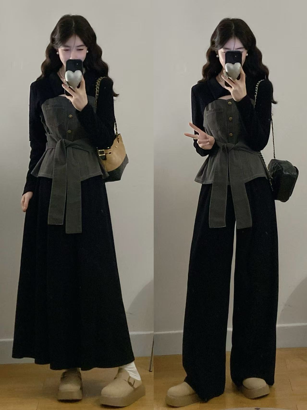 FA56320# 大码女装胖mm新款时尚气质设计感牛仔拼接上衣+半裙裤子套装 服裝批發女裝批發服飾貨源