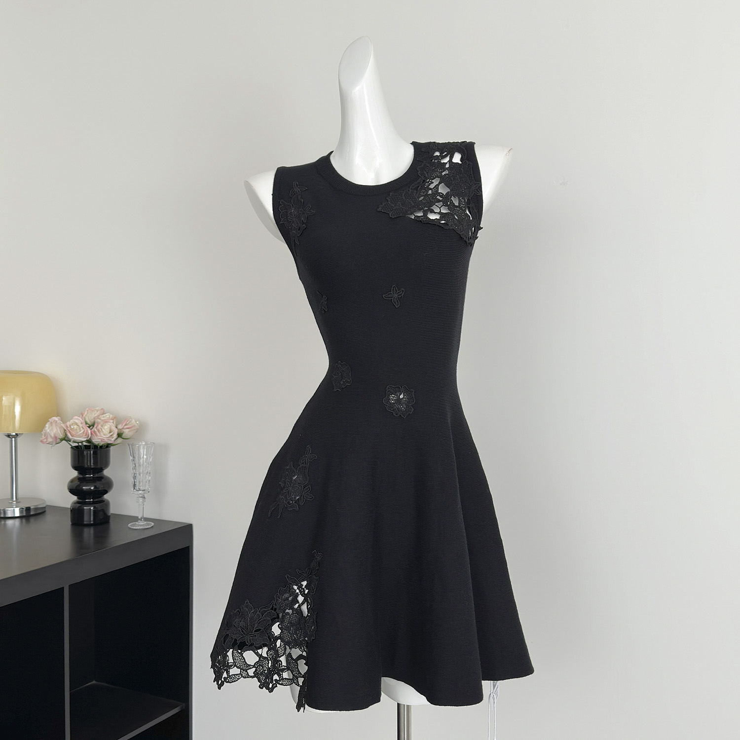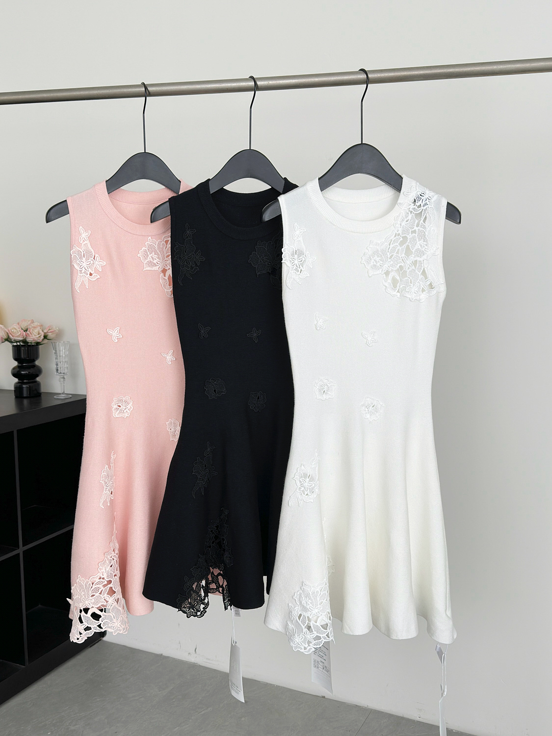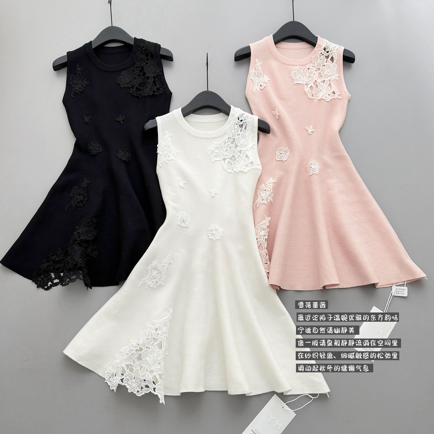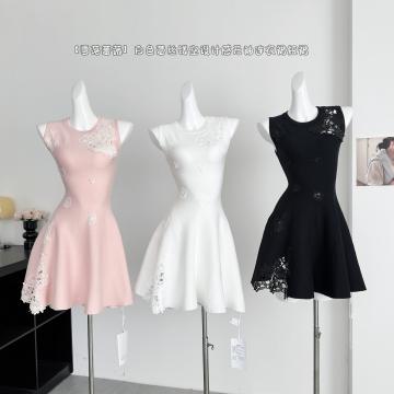 FA56598# Hotdog热狗很辣雪落蔷薇白色蕾丝镂空设计感无袖连衣裙短裙 服裝批發女裝批發服飾貨源