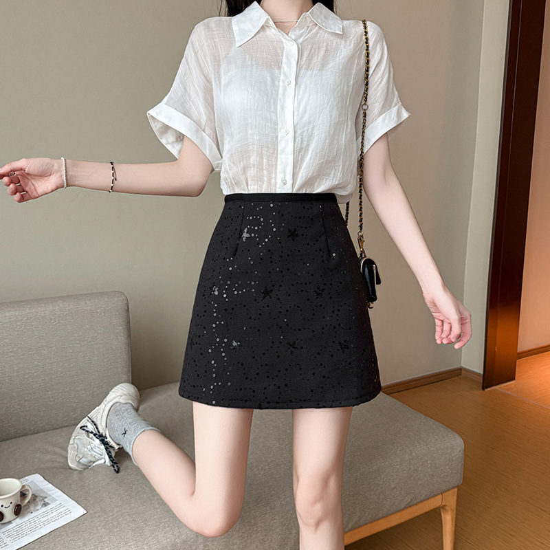 FA56609# 闪闪亮片半身短裙女春夏款高腰a字包臀裙 服裝批發女裝批發服飾貨源