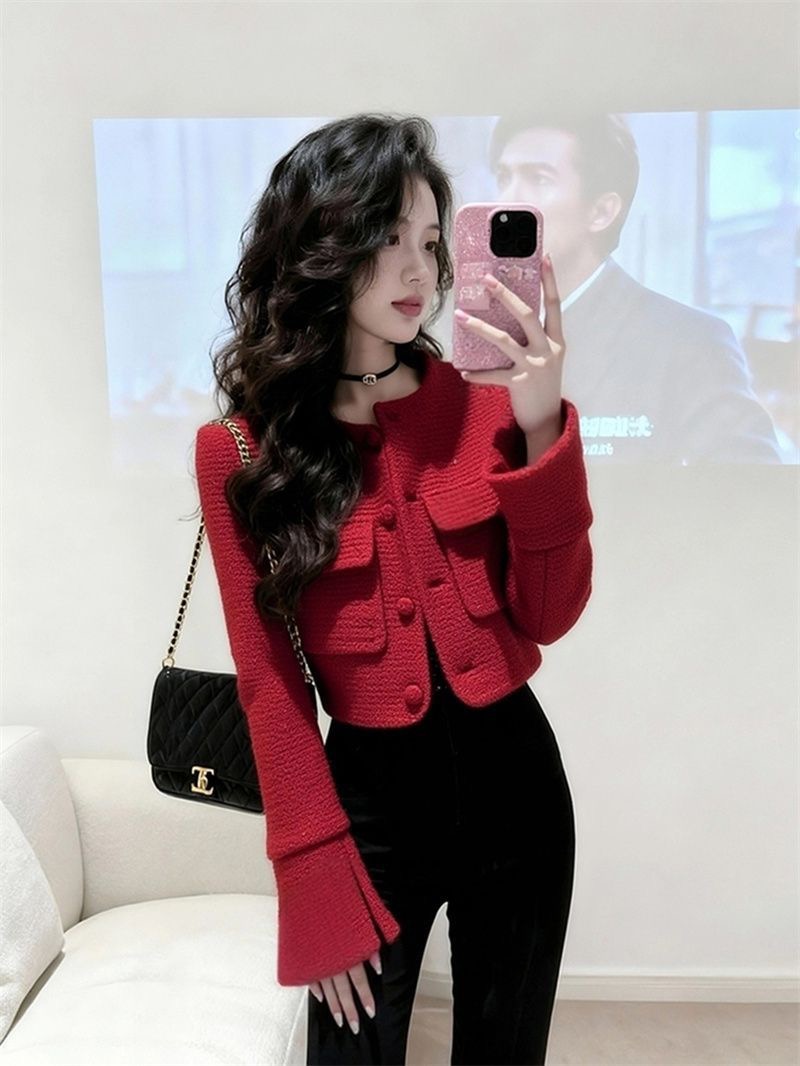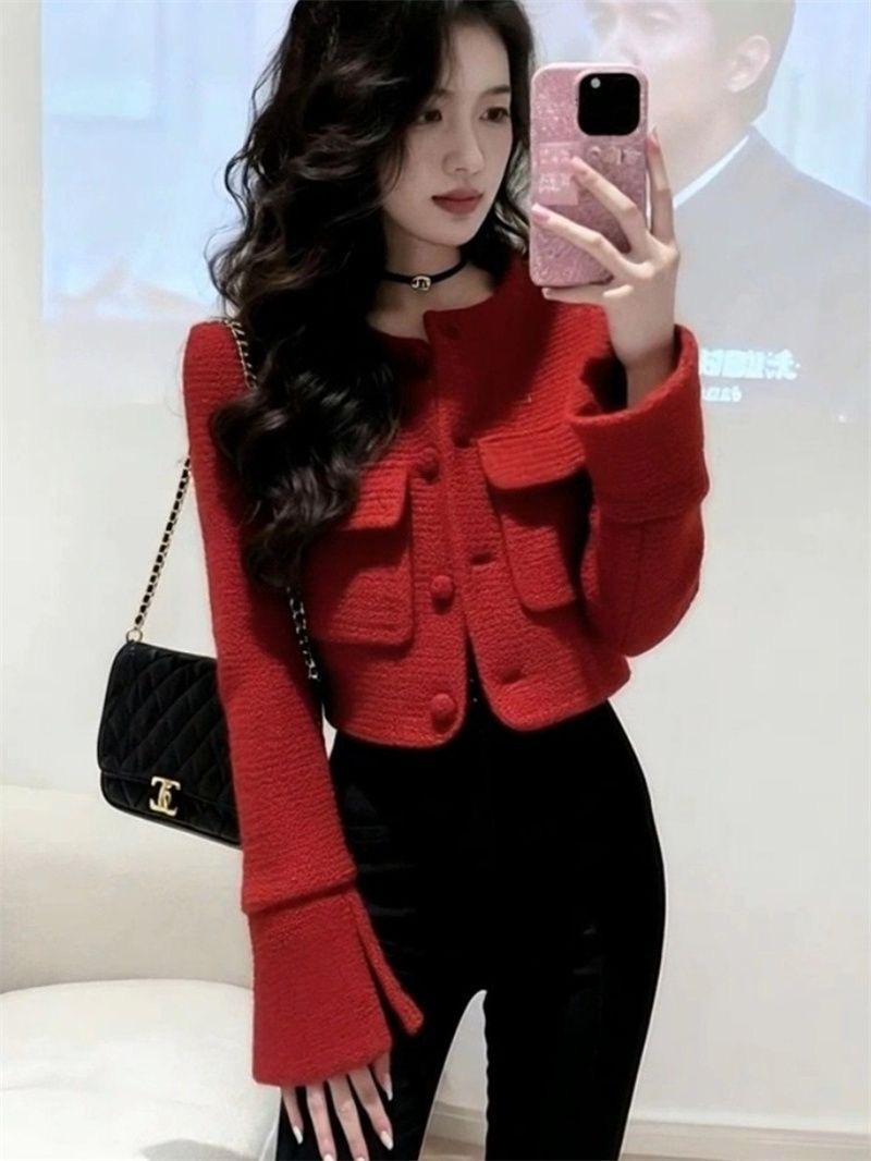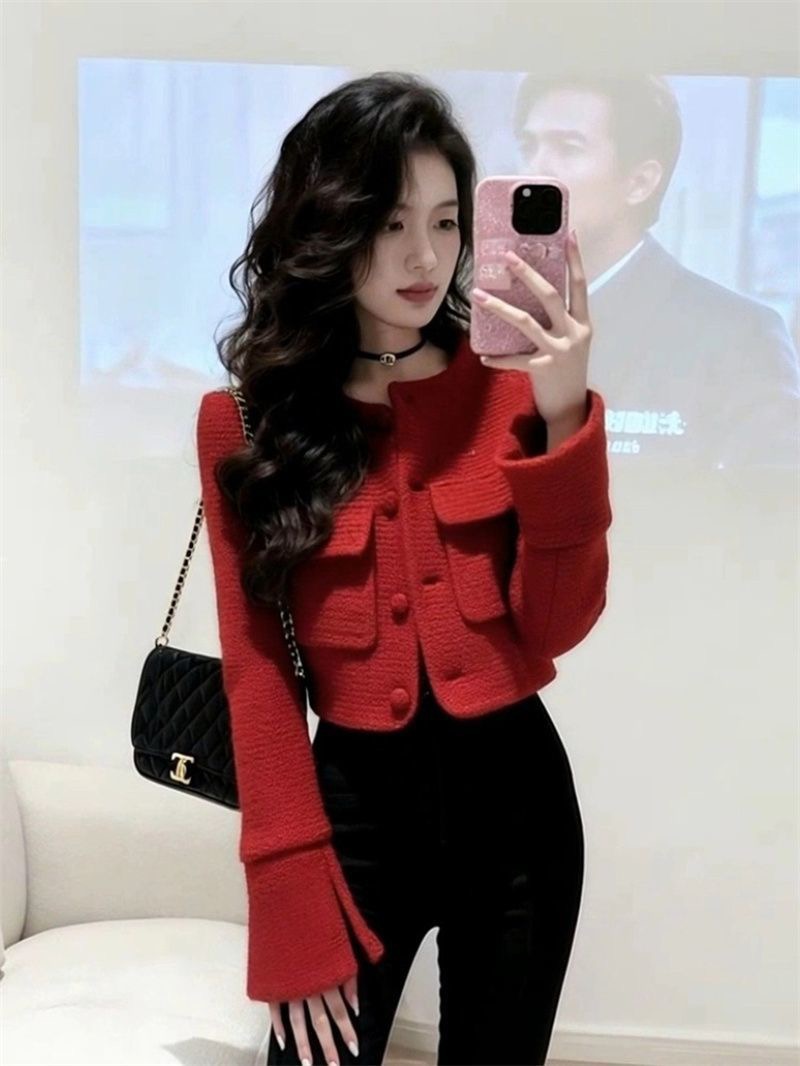 FA56630# 红色小香风外套新款今年流行爆款高端气质时髦圣诞新年上衣冬 服裝批發女裝批發服飾貨源