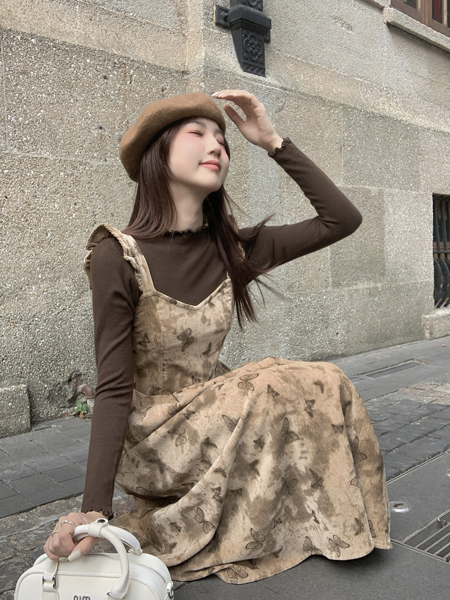 FA56631# 韩版春季新款连衣裙设计感蝴蝶花飞飞袖背心裙百搭打底衫 服裝批發女裝批發服飾貨源