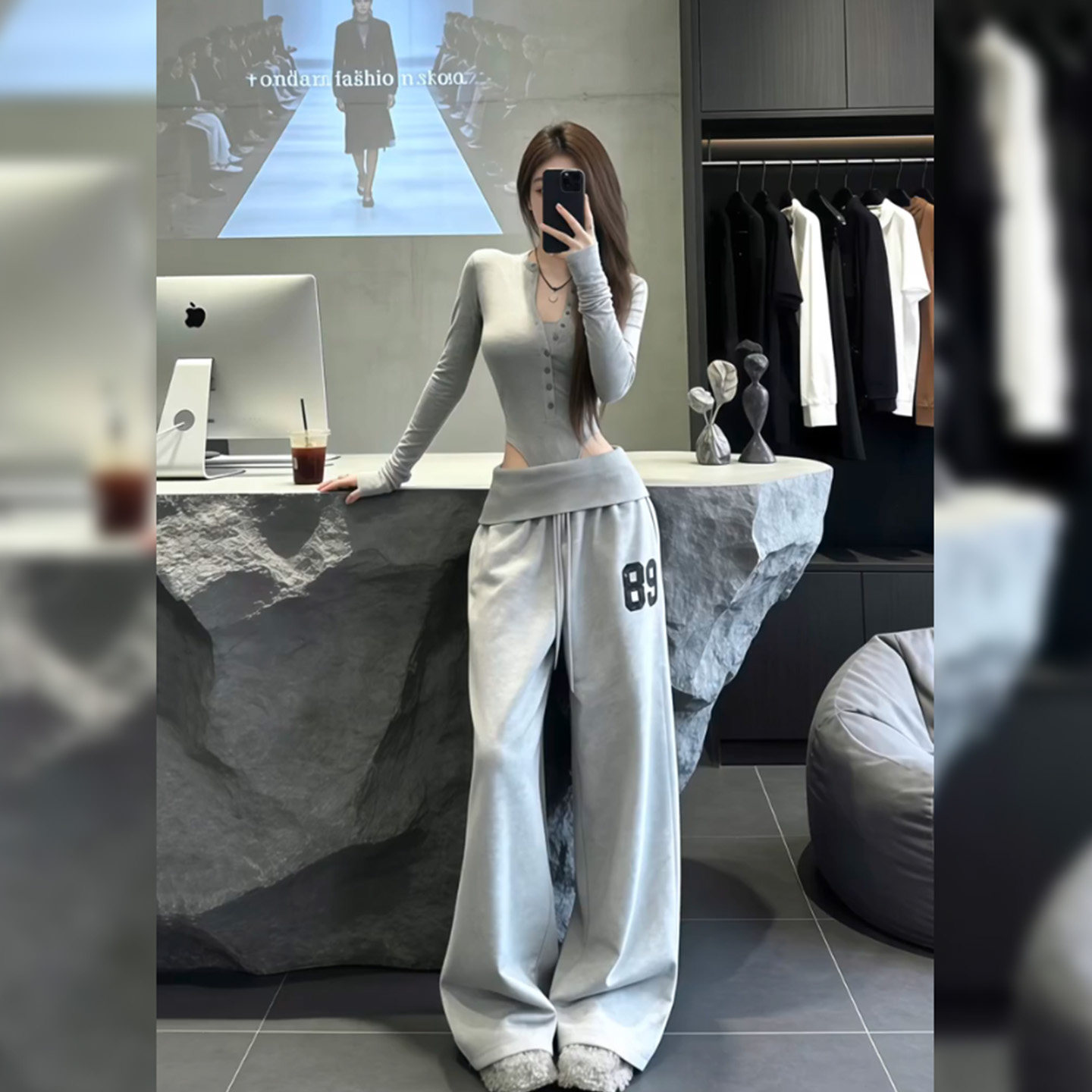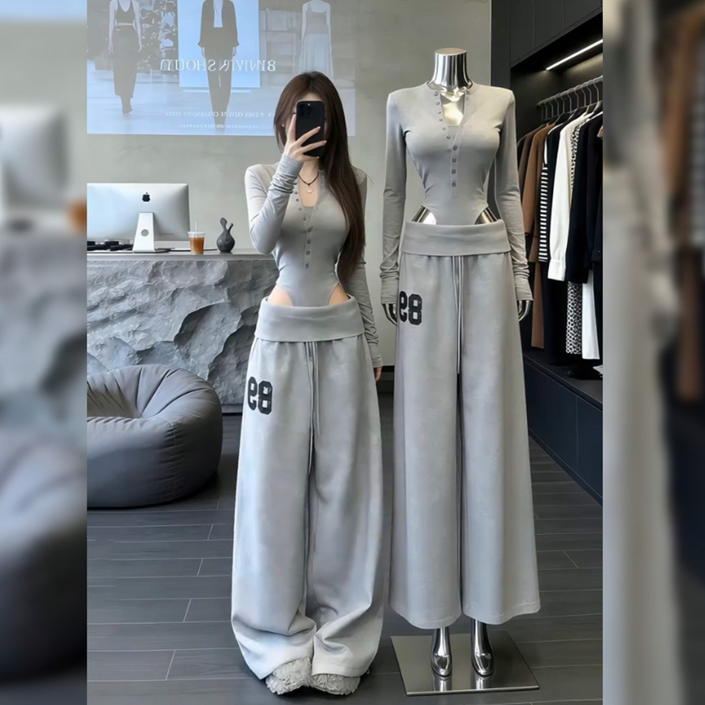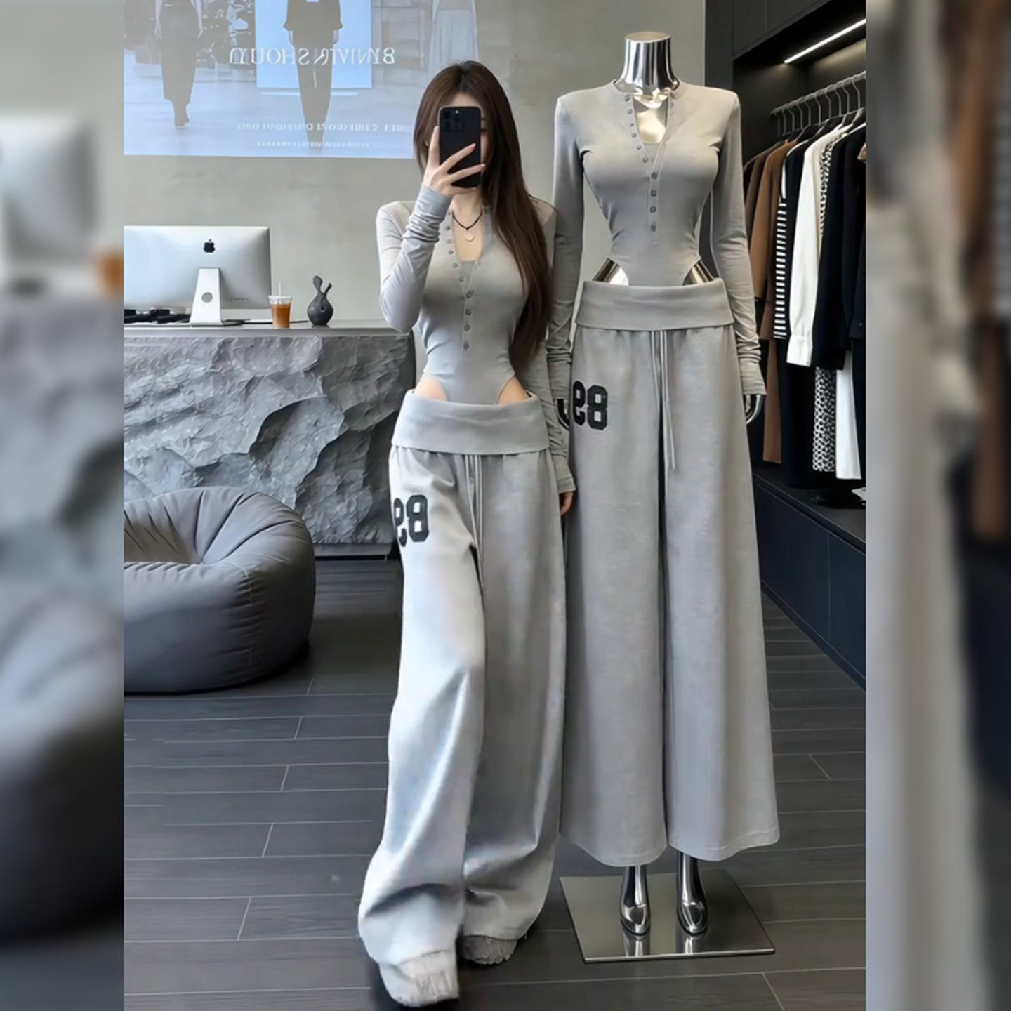 FA56638# 韩版气质修身连体上衣阔腿长裤女装春季新款辣妹休闲运动套装 服裝批發女裝批發服飾貨源