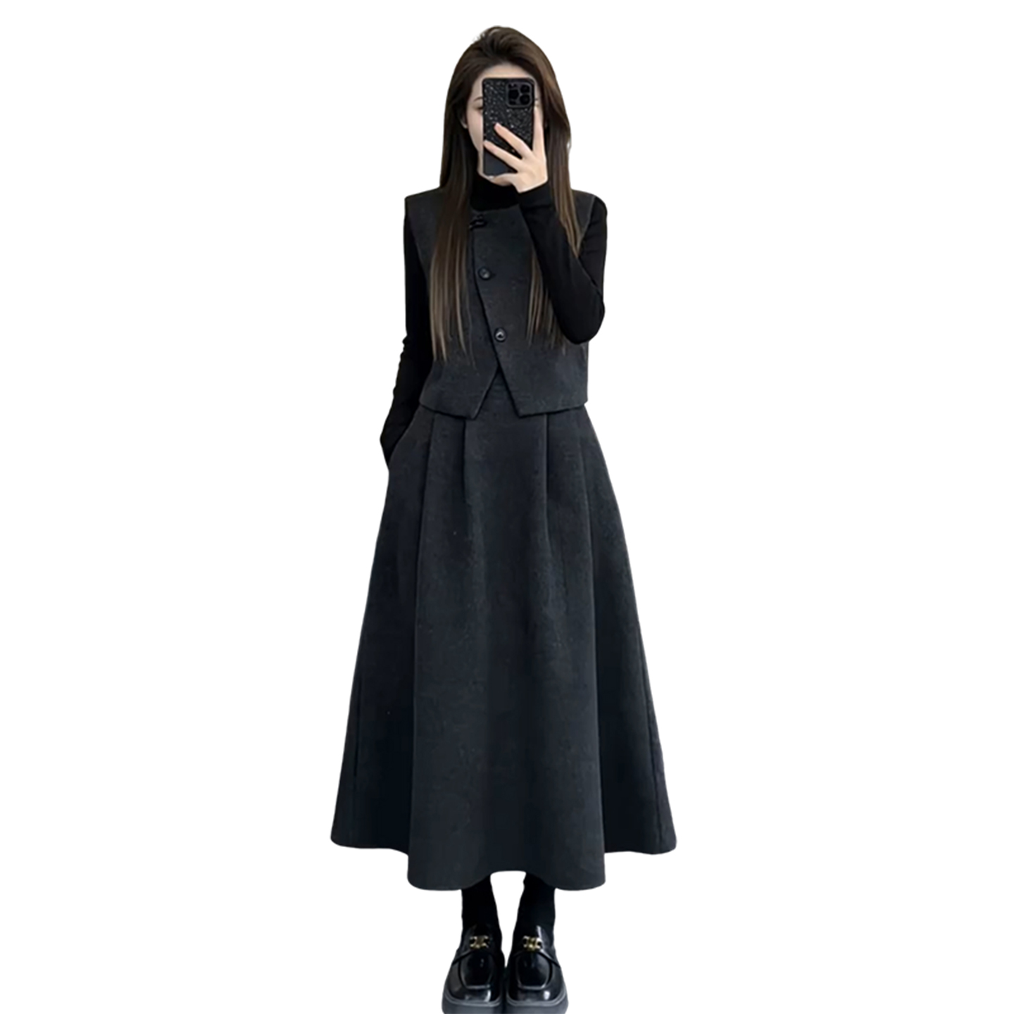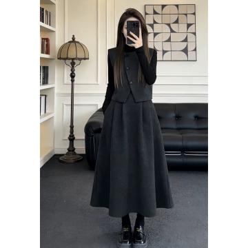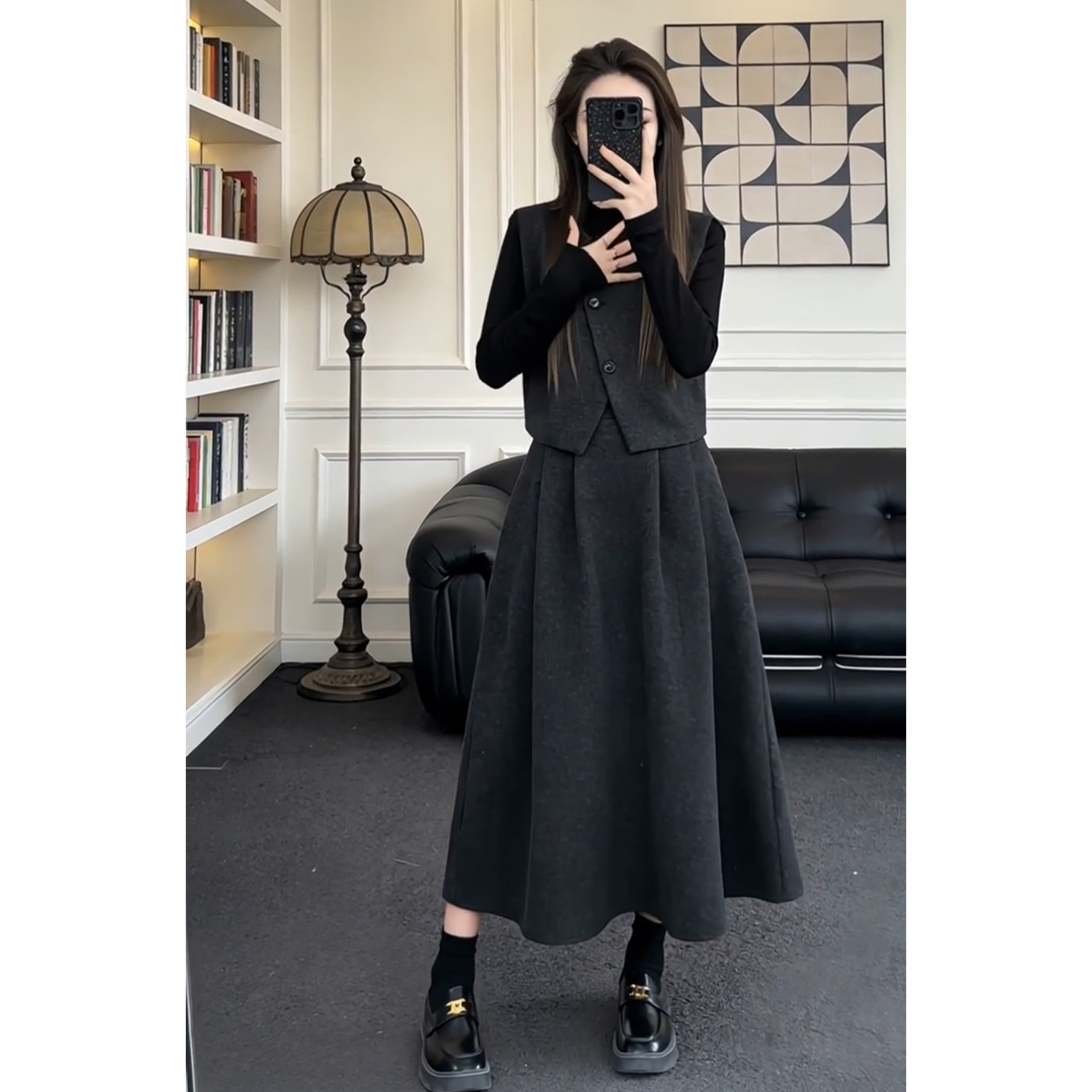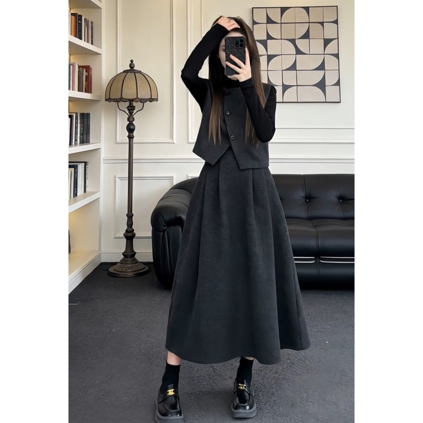 FA56732# 韩系灰色收腰针织连衣裙子女秋冬高级感气质毛衣套装长裙 服裝批發女裝批發服飾貨源