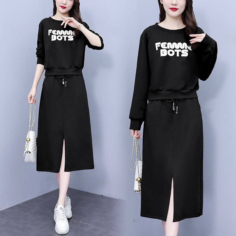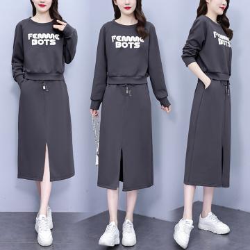 FA56746# 春季新款圆领套头卫衣开叉半身裙两件套休闲宽松套装裙女 服裝批發女裝批發服飾貨源