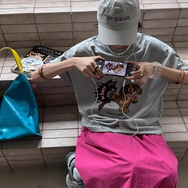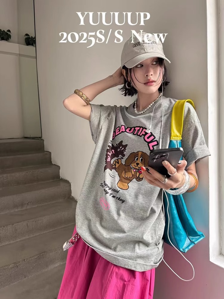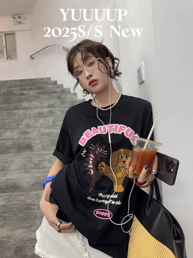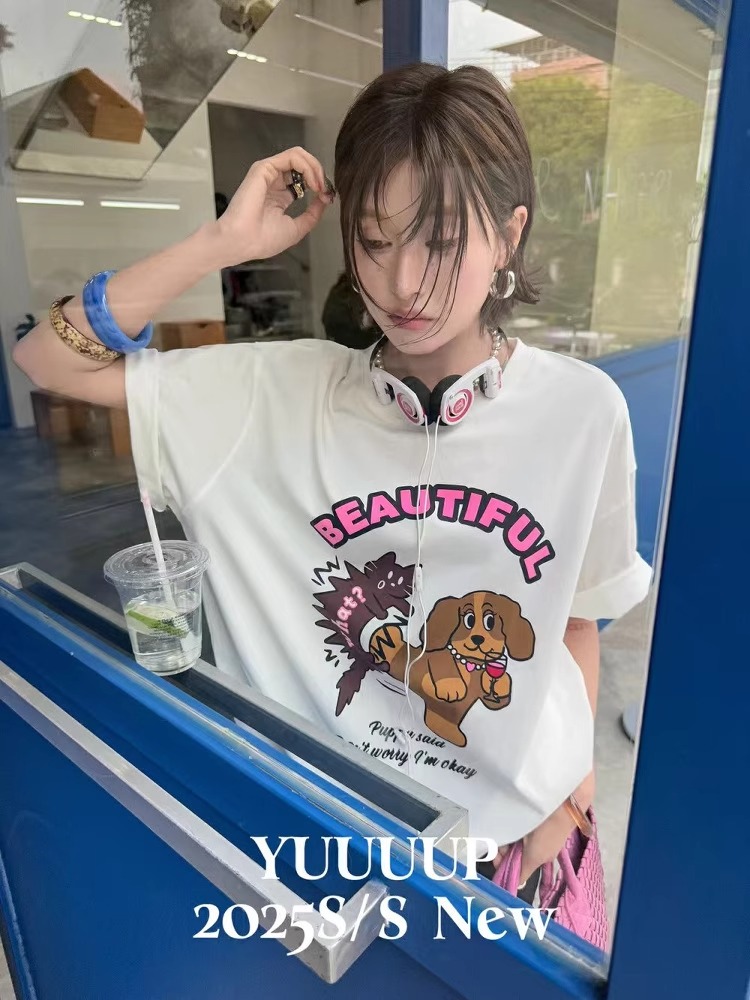 BY10104# 纯棉短袖T恤女宽松印花韩版卡通 服裝批發女裝批發服飾貨源