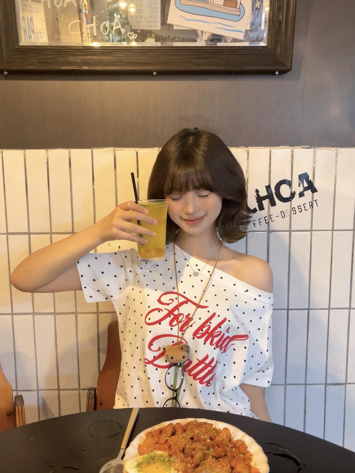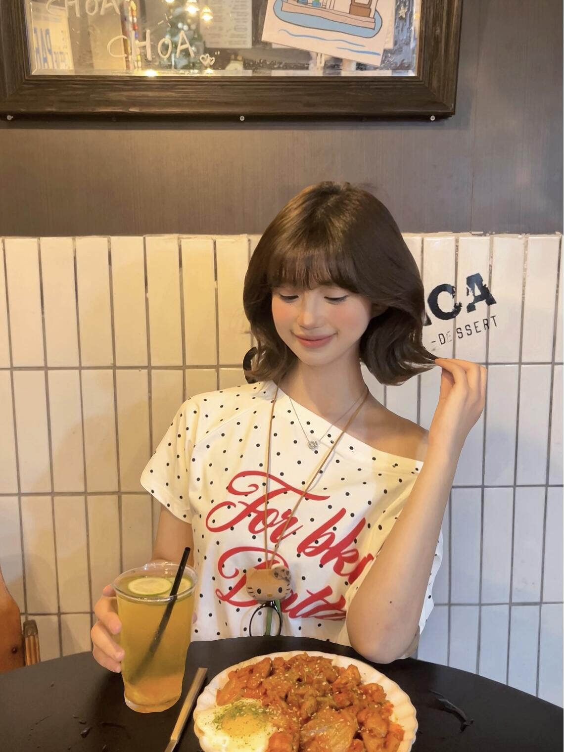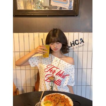 BY10147# 波点斜肩短袖t恤女夏季美式复古辣妹风设计感独特漂亮上衣显瘦 服裝批發女裝批發服飾貨源