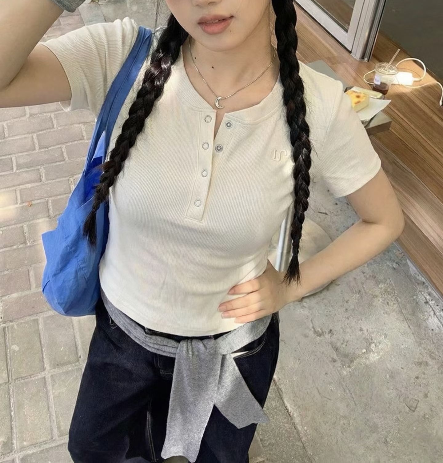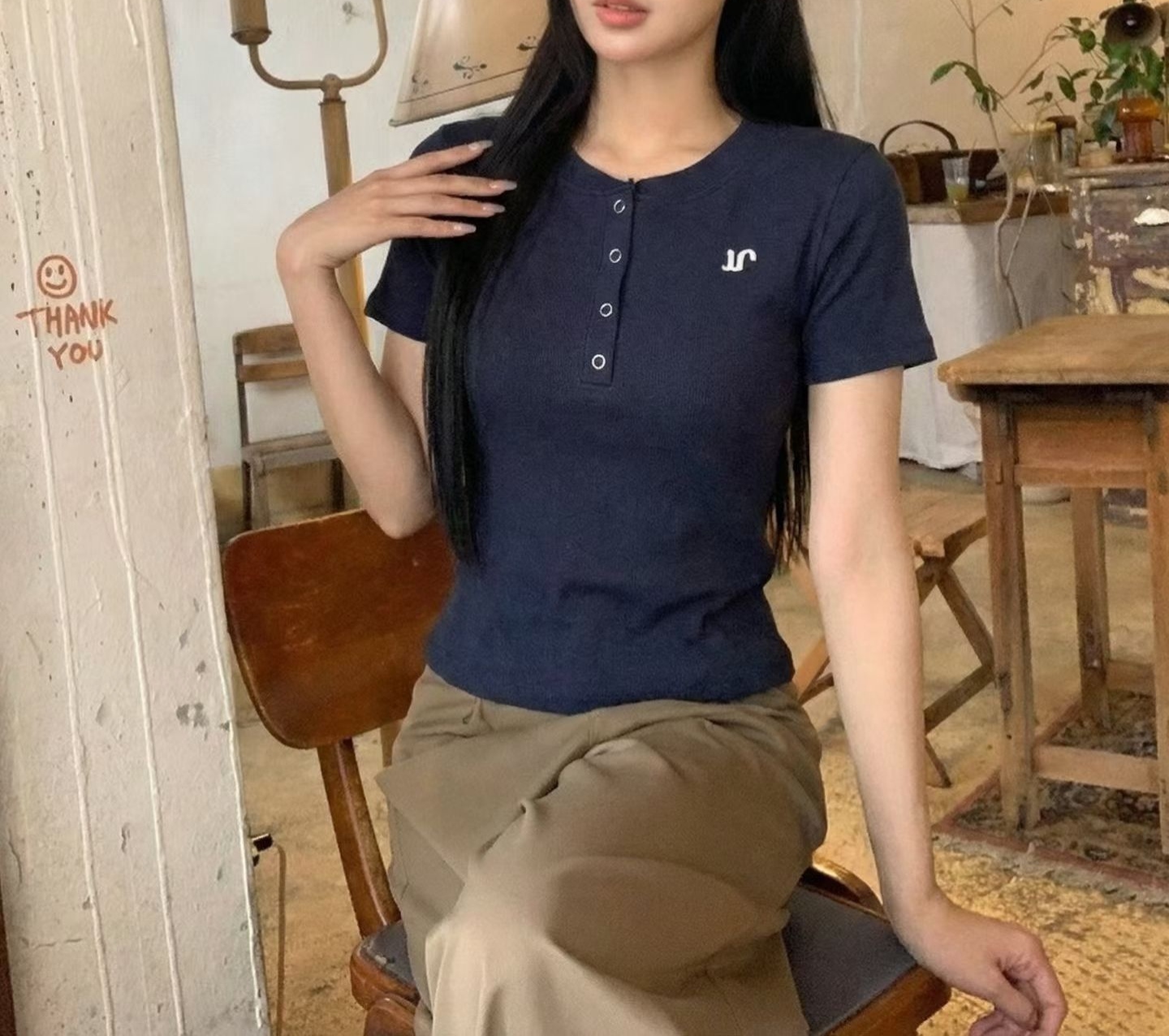 BY10150# 纯欲风复古正肩T恤女夏甜辣短袖修身短款基础上衣 服裝批發女裝批發服飾貨源