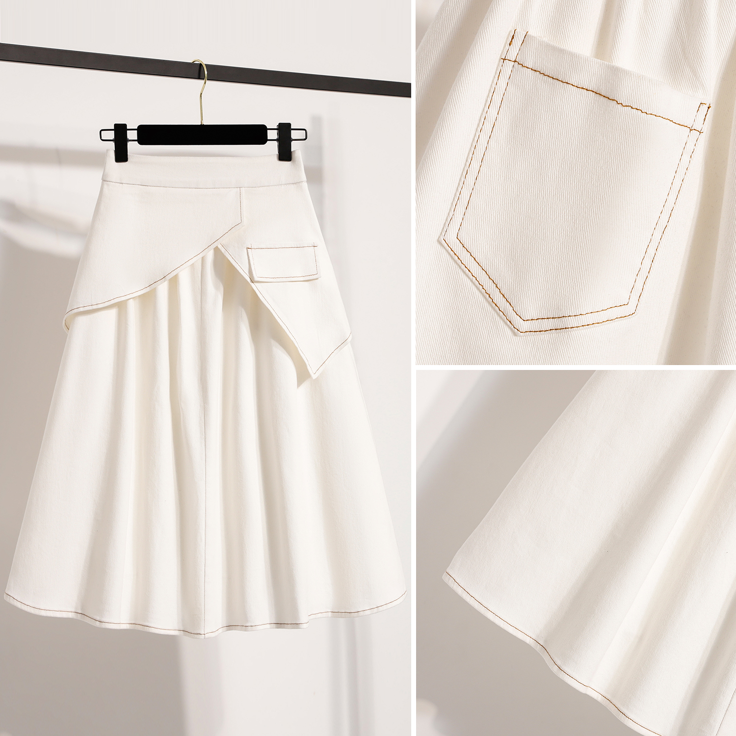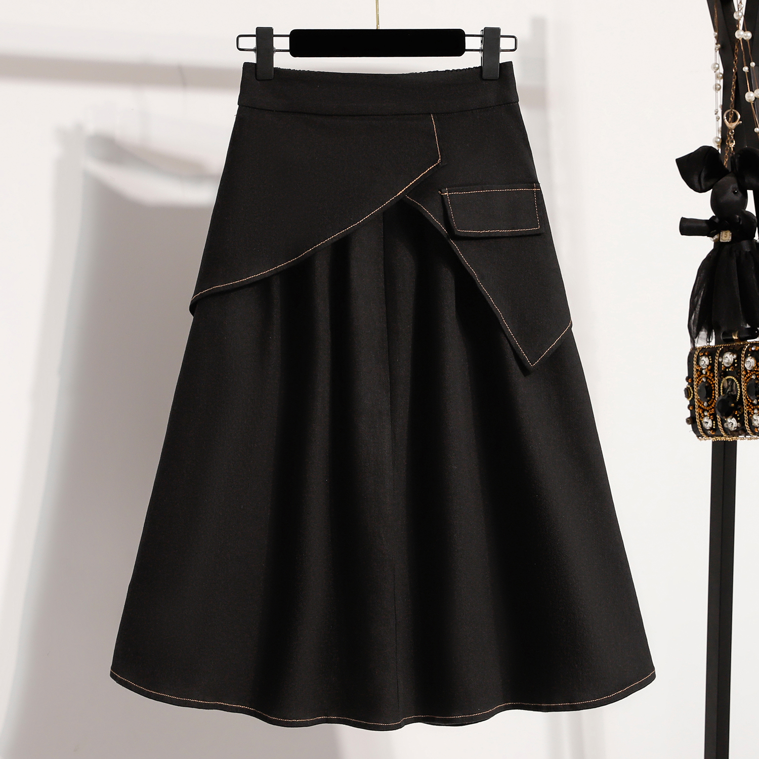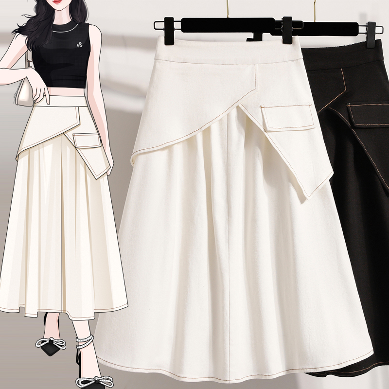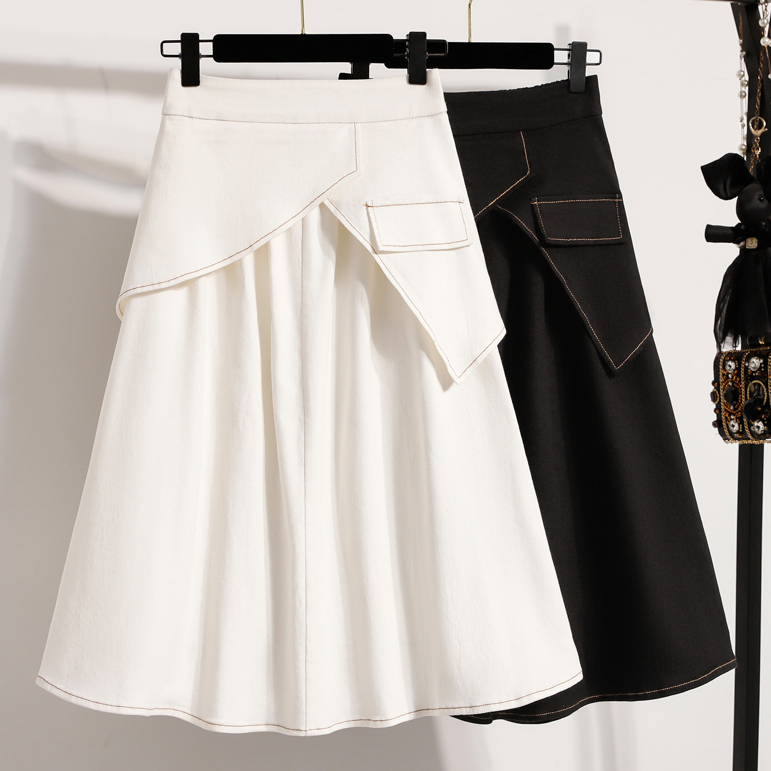 BY10428# 春夏大码松紧腰牛仔中长款裙高腰胖mm显瘦遮胯A字休闲半身裙 服裝批發女裝批發服飾貨源