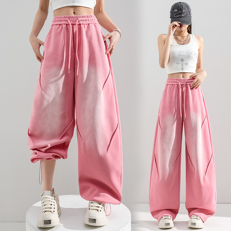 BY10452# 春季新款宽松扎染美式休闲弯刀裤显瘦两穿卫裤阔腿裤女 服裝批發女裝批發服飾貨源