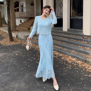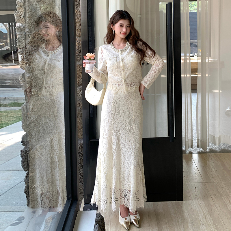 BY11880# 春季法式高级感女人味重工钉珠衬衫长裙套装 服裝批發女裝批發服飾貨源