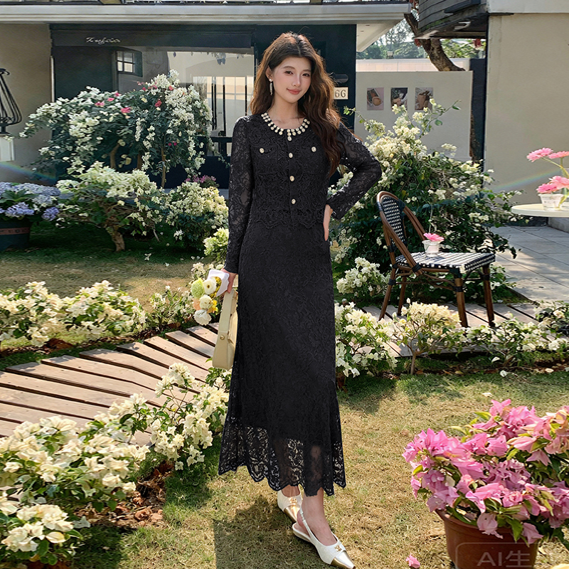 Home > 韩版套装 > BY11880# 春季法式高级感女人味重工钉珠衬衫长裙套装 服裝批發女裝批發服飾貨源