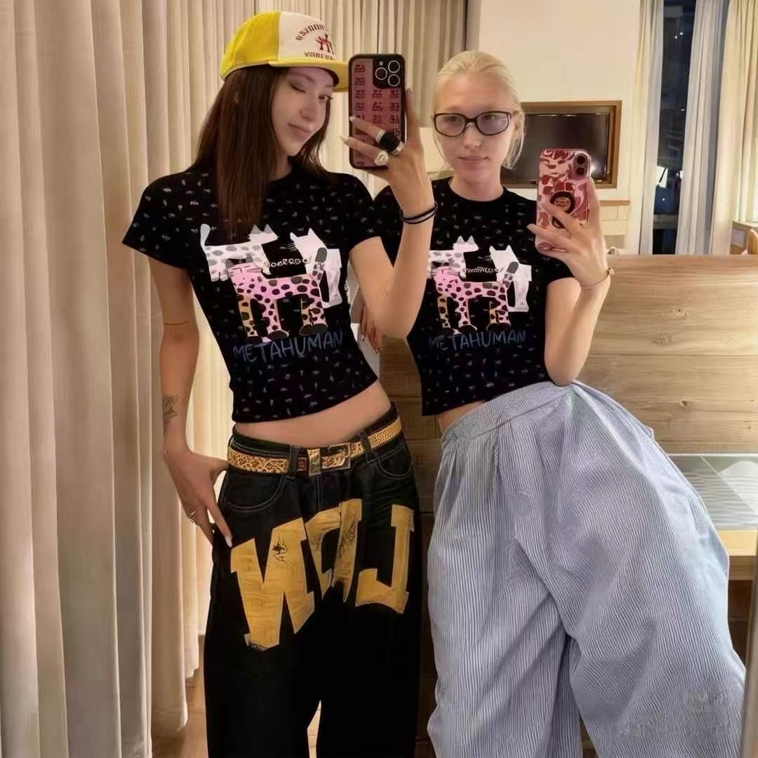 BY11884# 酷辣甜美可爱豹纹猫春夏新ins潮韩日系ootd纯棉减龄街头度假T 服裝批發女裝批發服飾貨源