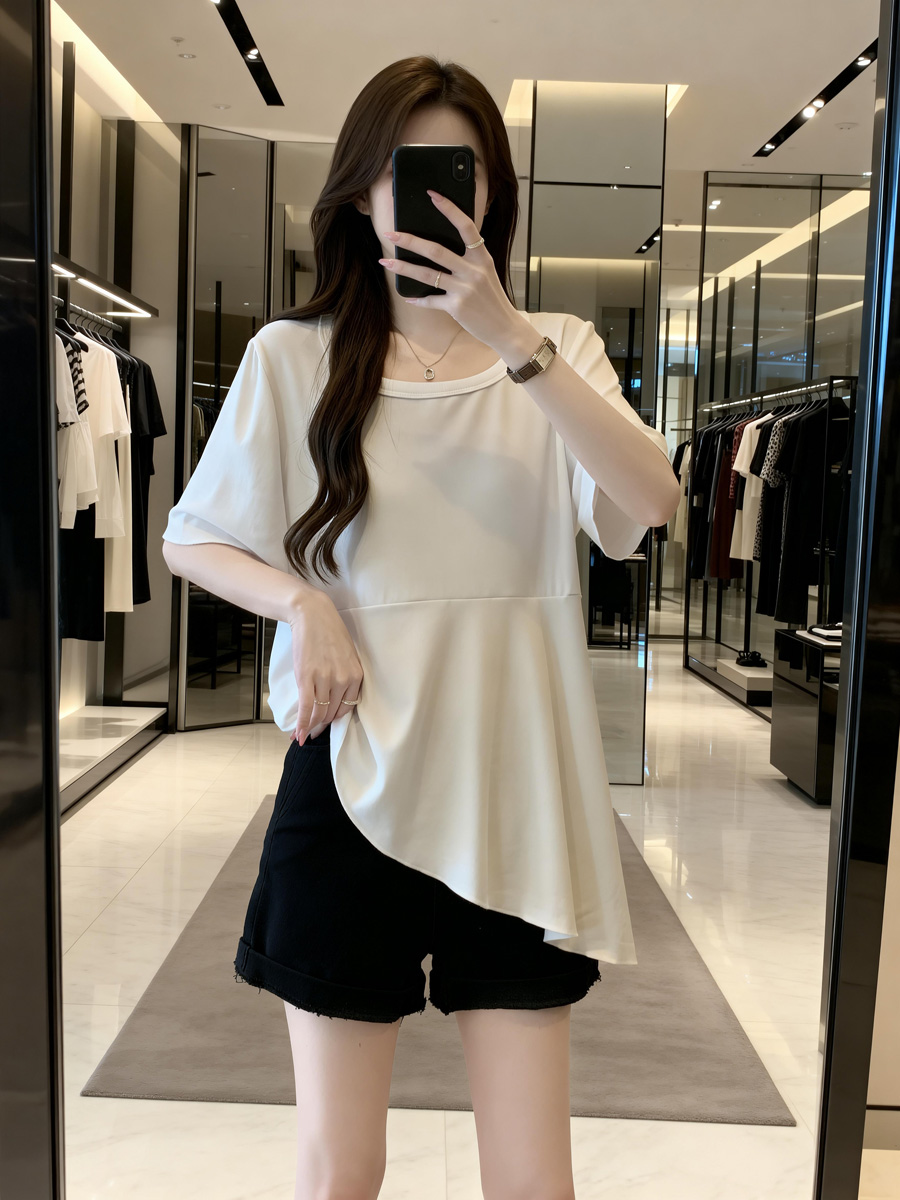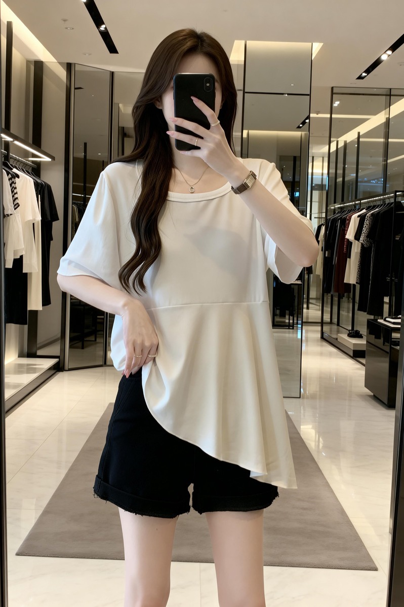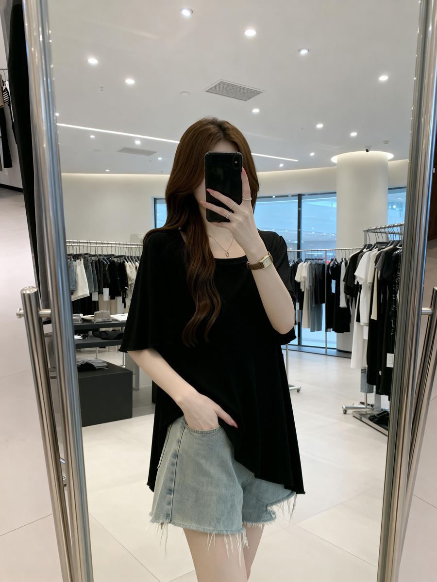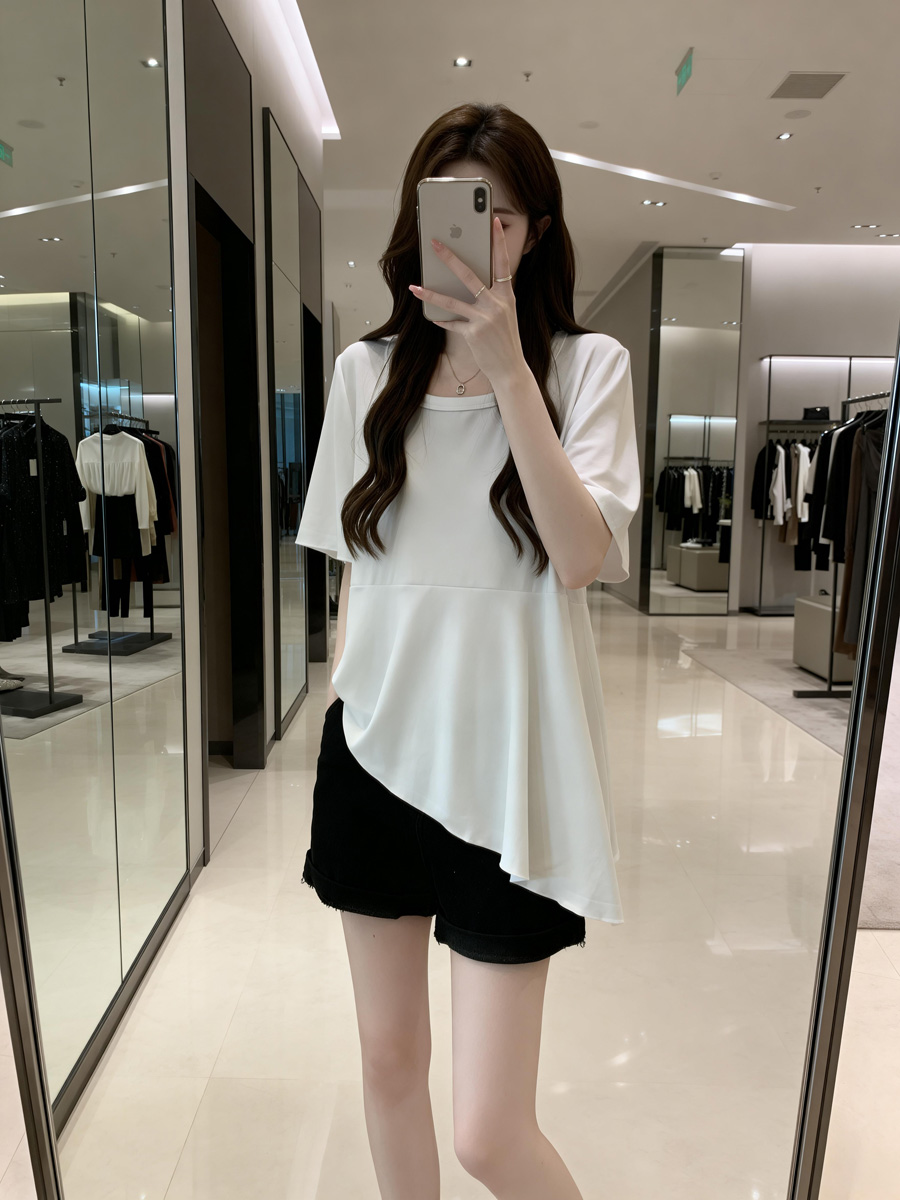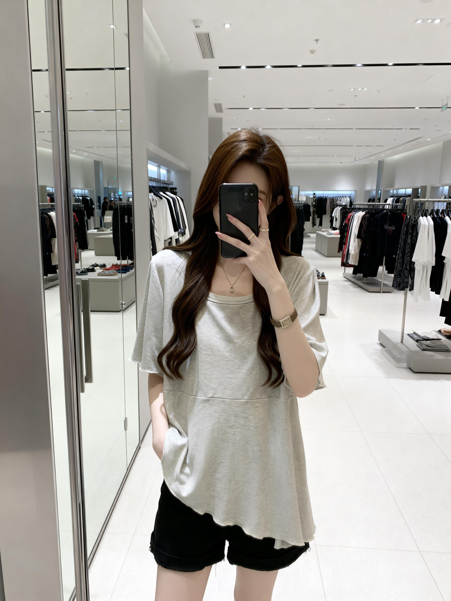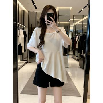 BY11894# 夏季新款个性荷叶边透气针织T恤女大码百搭显瘦休闲上衣 服裝批發女裝批發服飾貨源