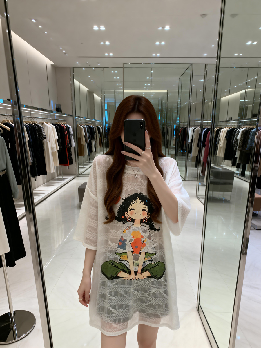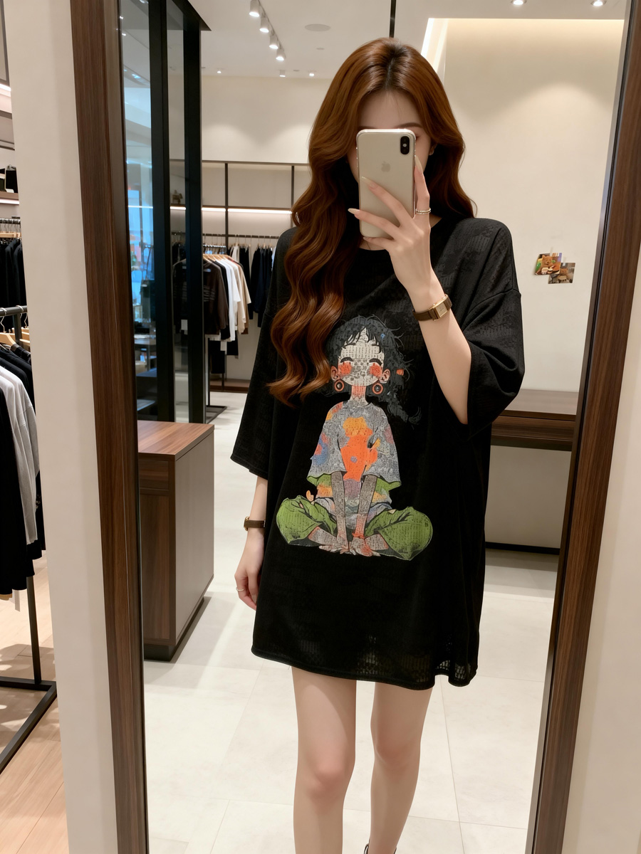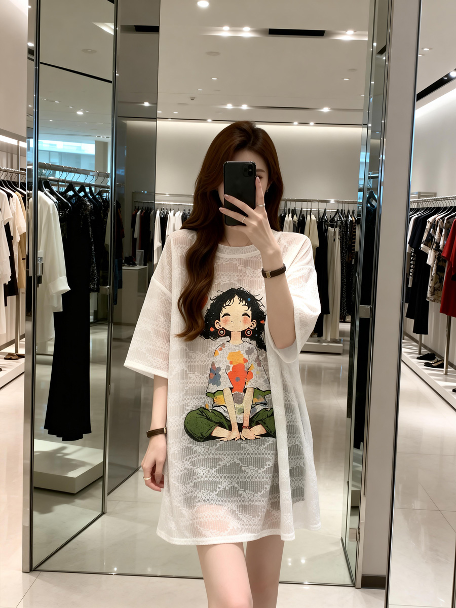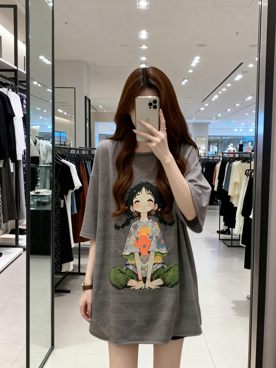 BY11900# 夏季新款圆领透气印花卡通T恤女大码宽松百搭休闲上衣 服裝批發女裝批發服飾貨源