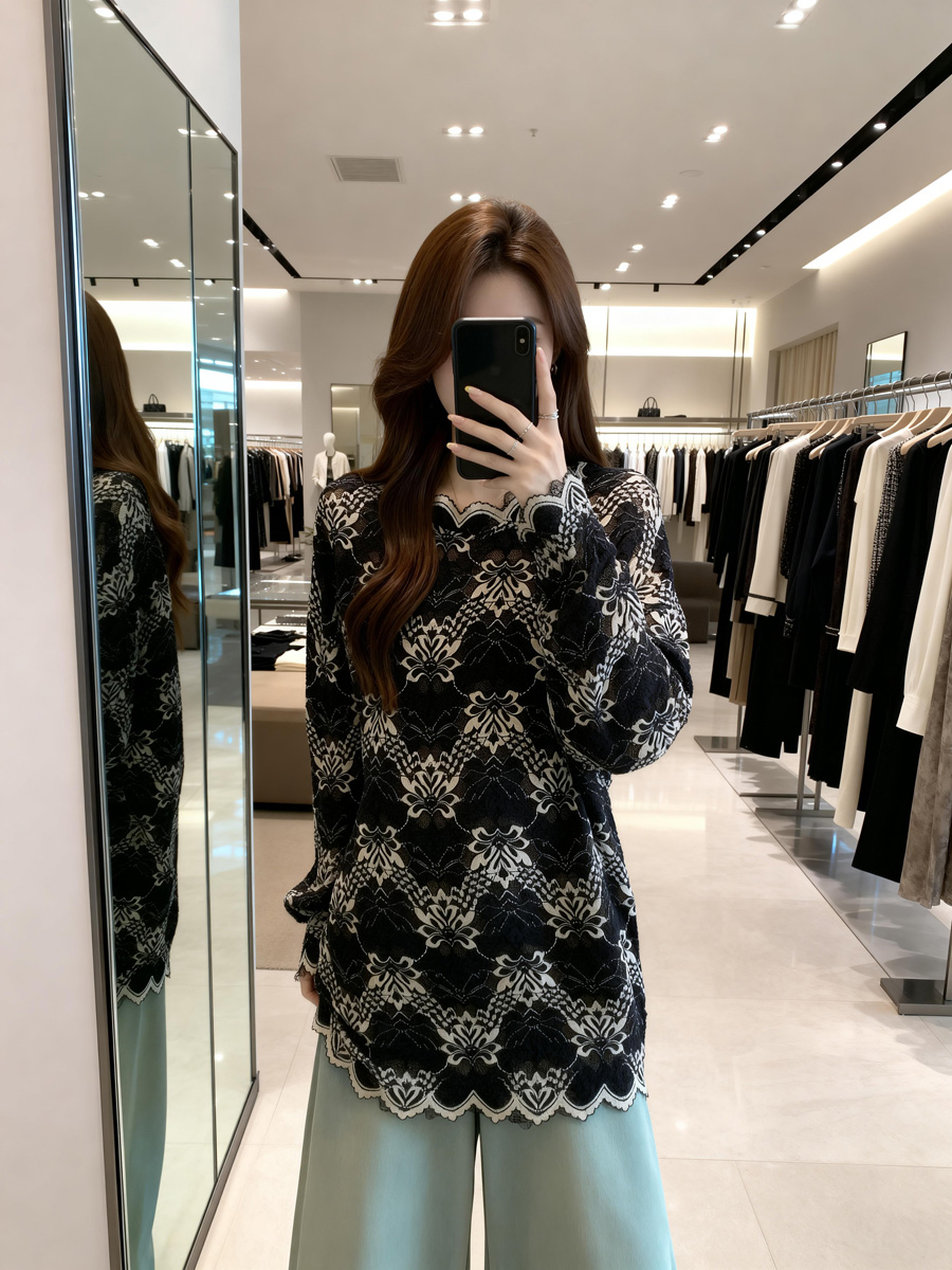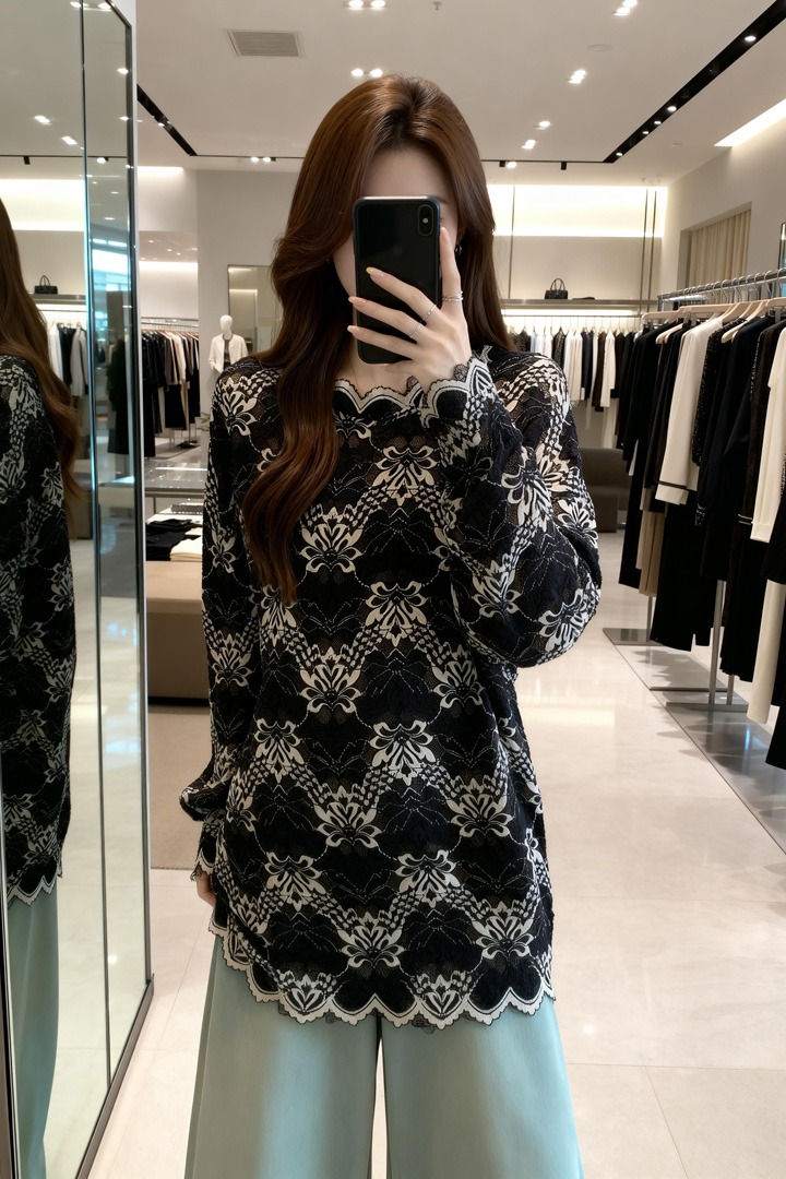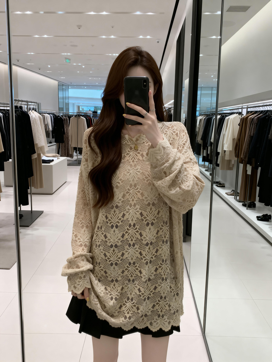 BY11907# 春季新款花边领时尚百搭长袖蕾丝衫女大码宽松休闲上衣 服裝批發女裝批發服飾貨源