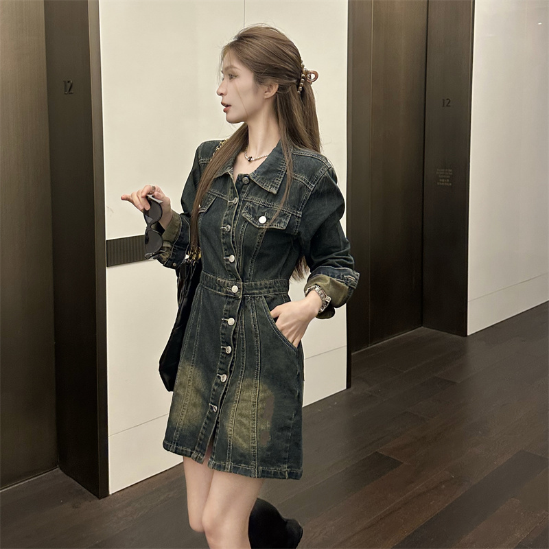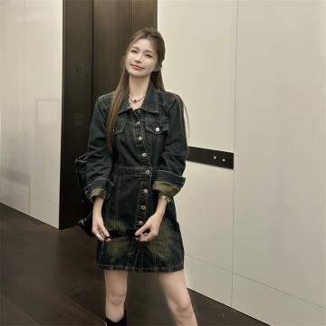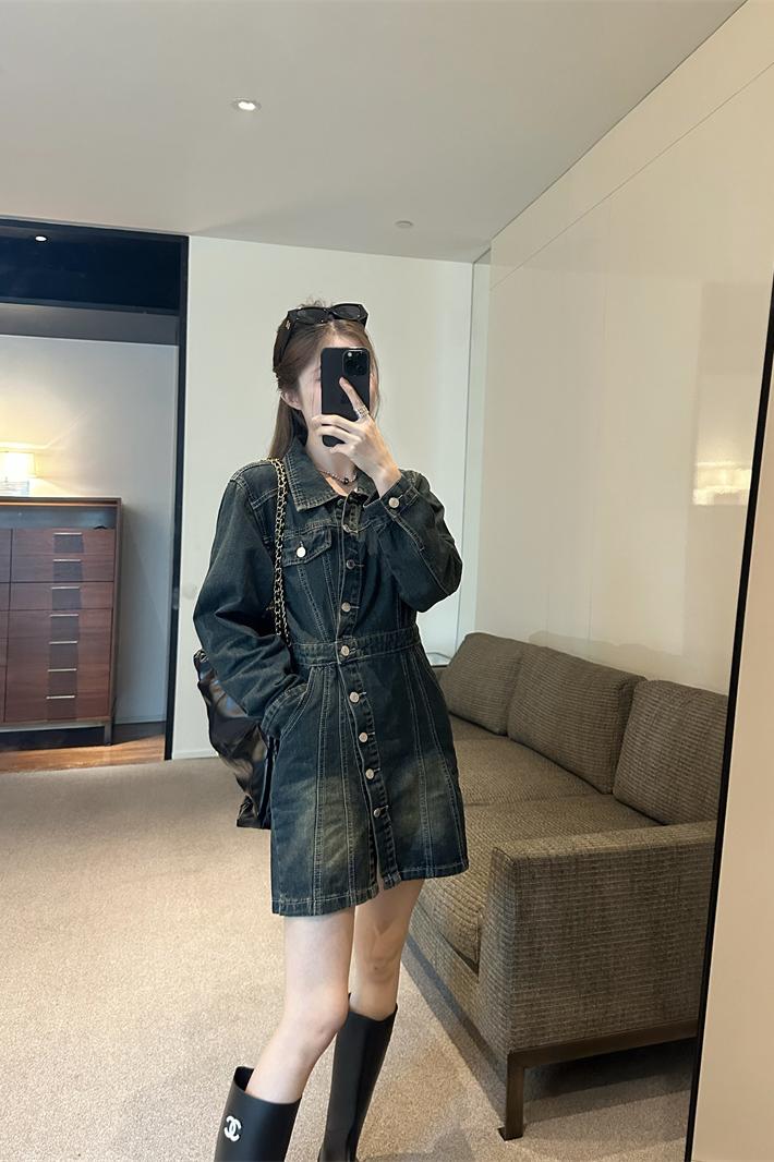 BY11917# 不规则设计感牛仔裙子女法式复古收腰显瘦连衣裙 服裝批發女裝批發服飾貨源