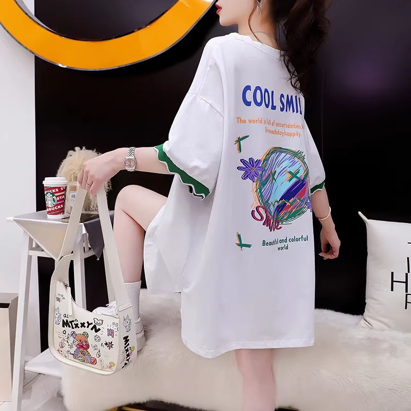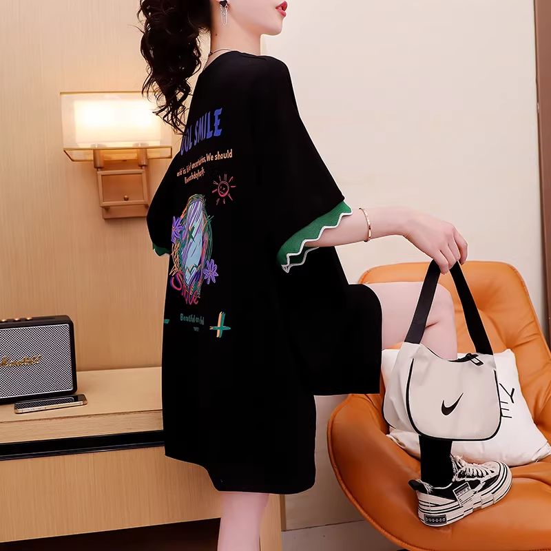 BY11951# 索罗娜中长款印花拼色短袖t恤女新款大码女装上衣 服裝批發女裝批發服飾貨源