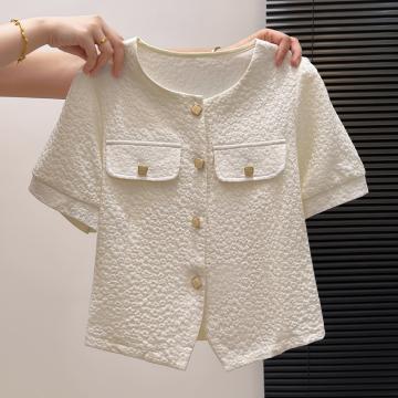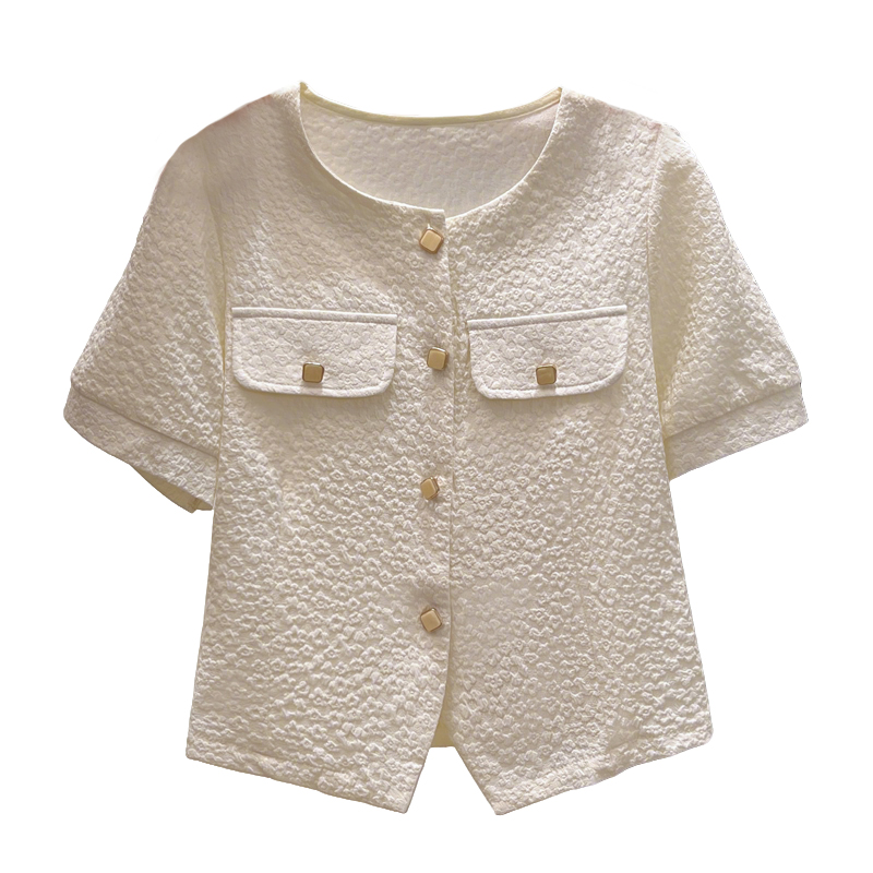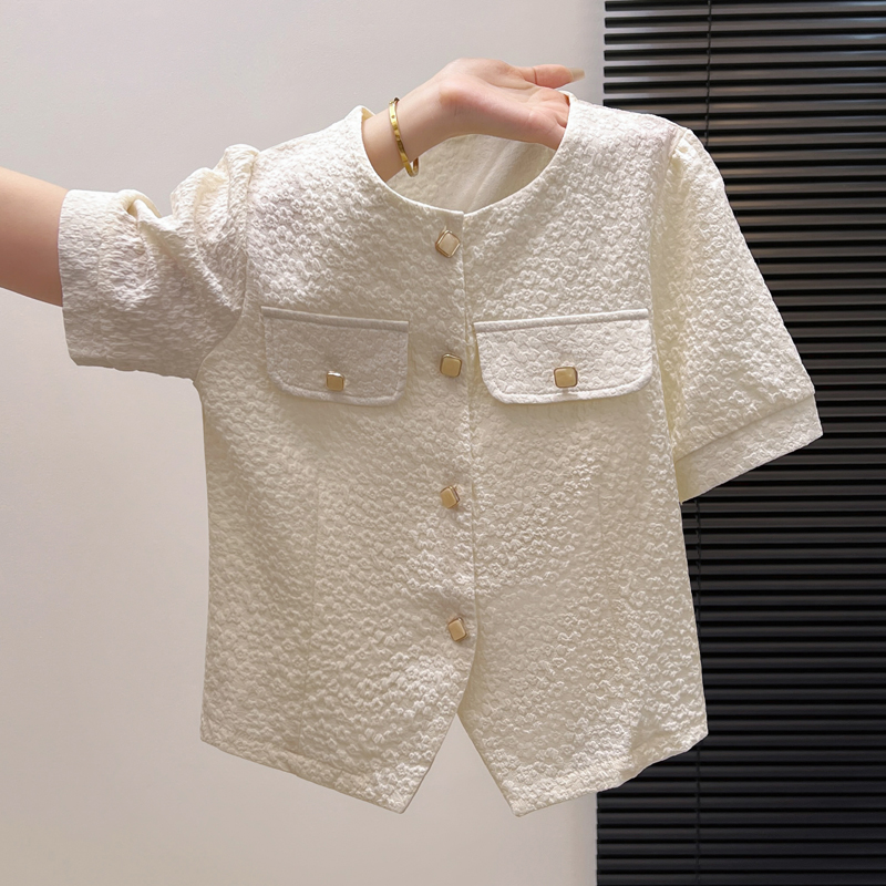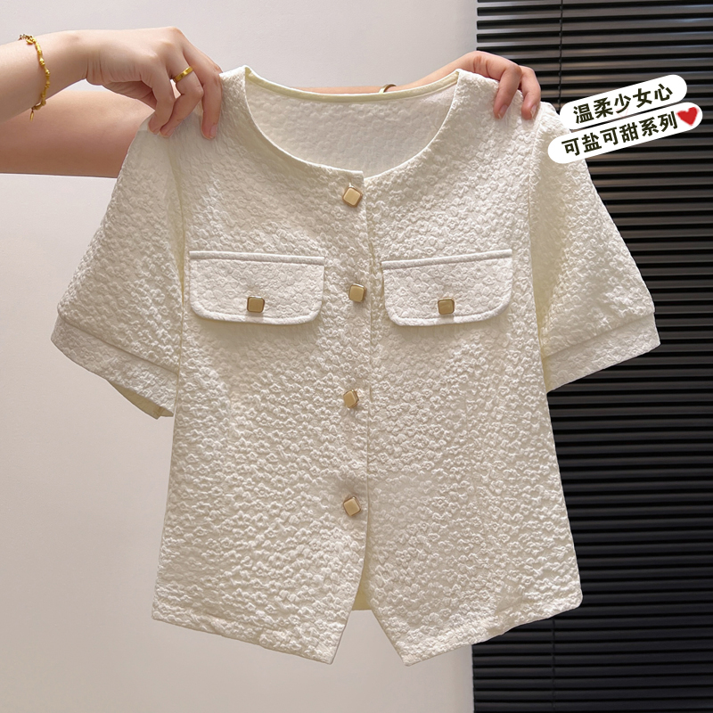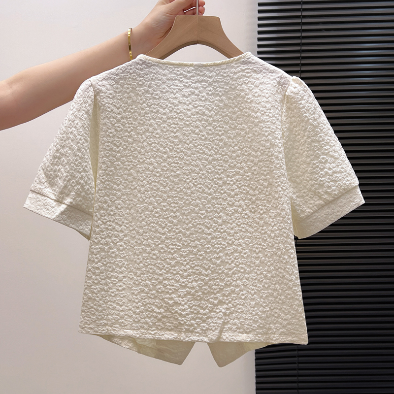 BY11977# 夏季新款时尚洋气短袖衬衫女气质减龄雪纺小衫显瘦百搭短款上衣潮 服裝批發女裝批發服飾貨源