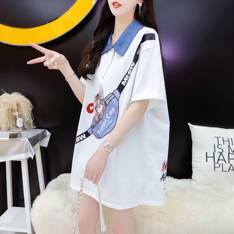 BY12018# 夏季潮牌棉大码牛仔领印花短袖T恤女 服裝批發女裝批發服飾貨源