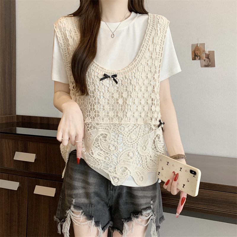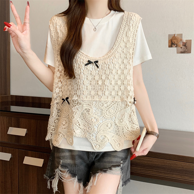 BY12020# ~大码钩花镂空V领背心马甲女夏季新款显瘦叠穿外搭罩衫 服裝批發女裝批發服飾貨源