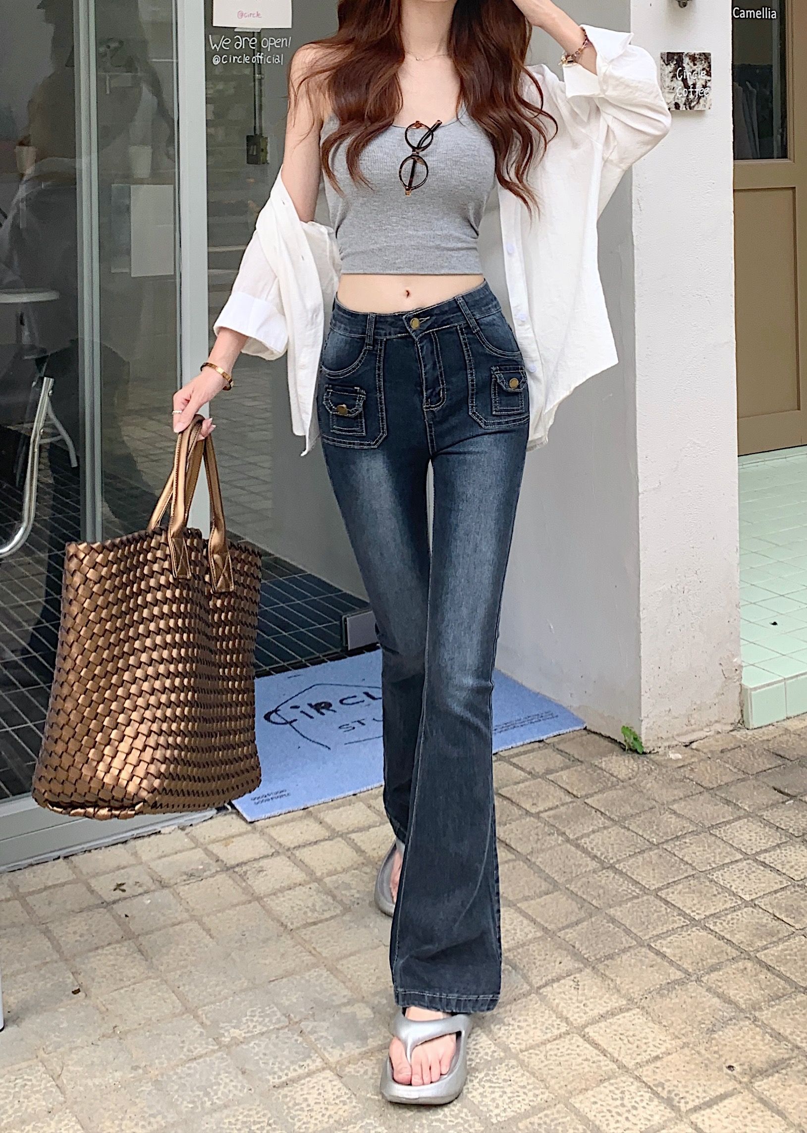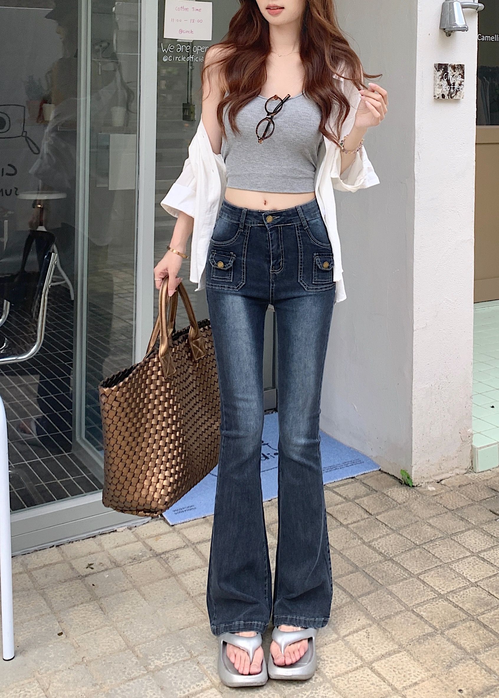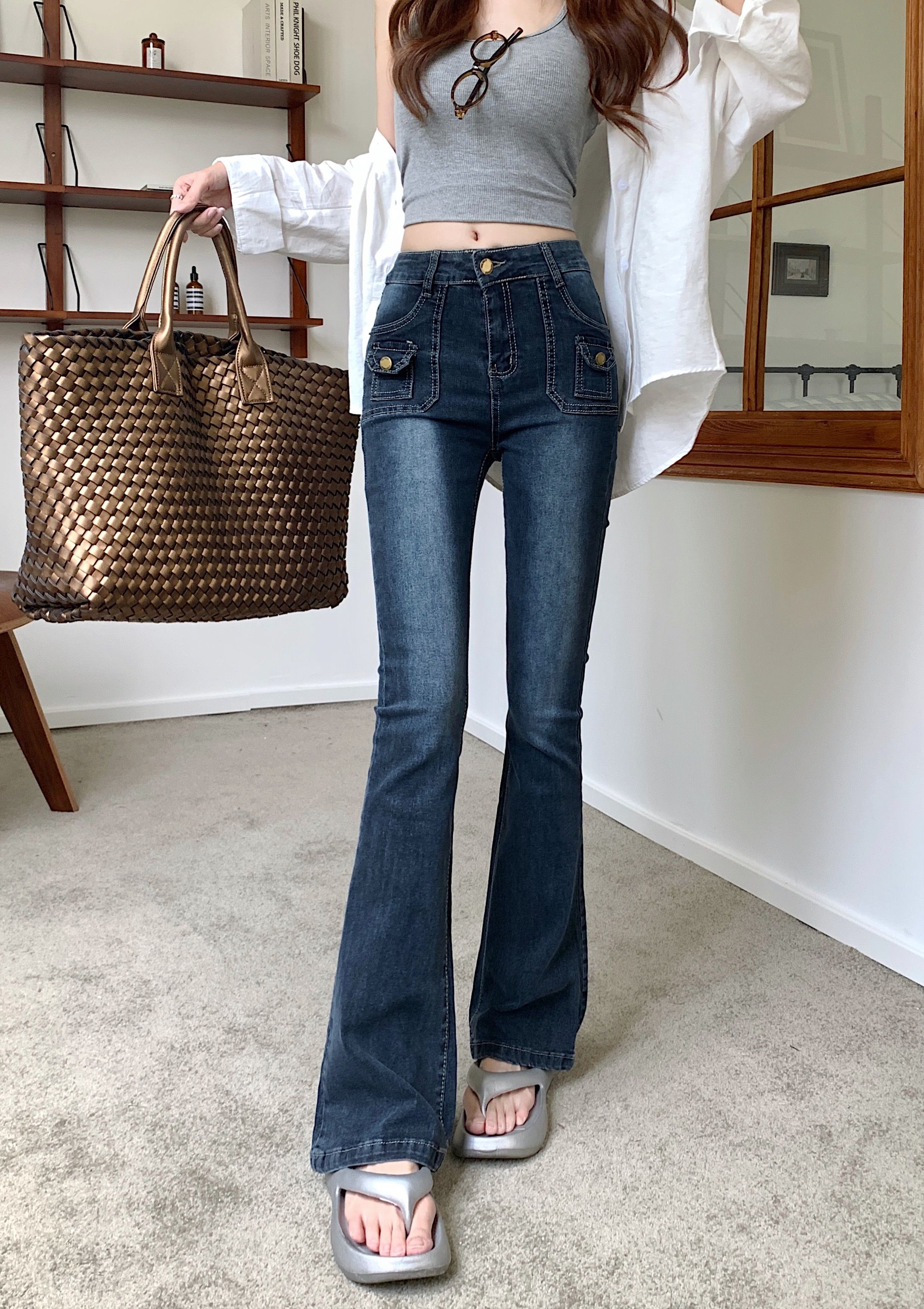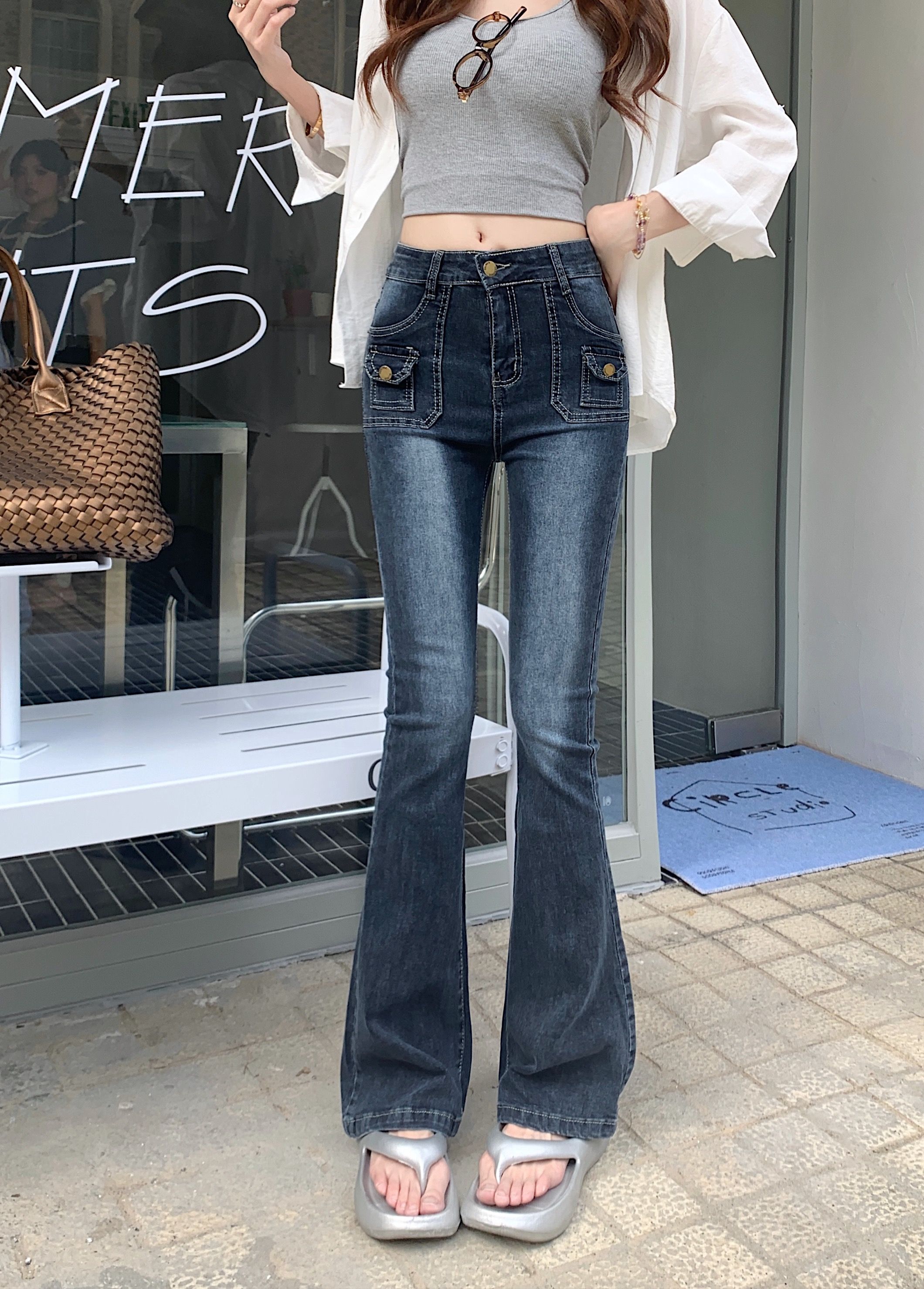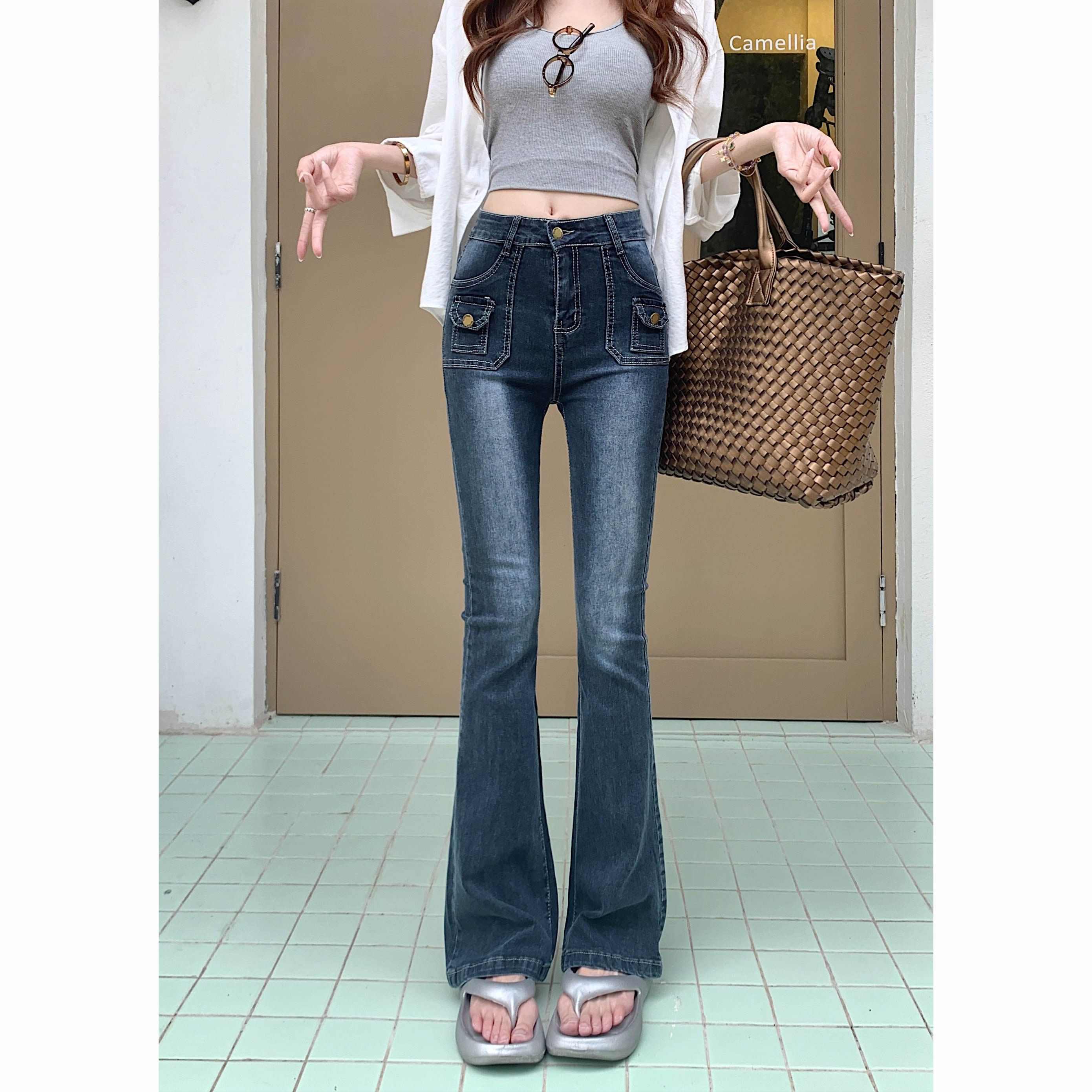BY12117# 美式复古蓝工装牛仔裤高腰喇叭裤微喇裤女春秋新款弹力裤子 服裝批發女裝批發服飾貨源