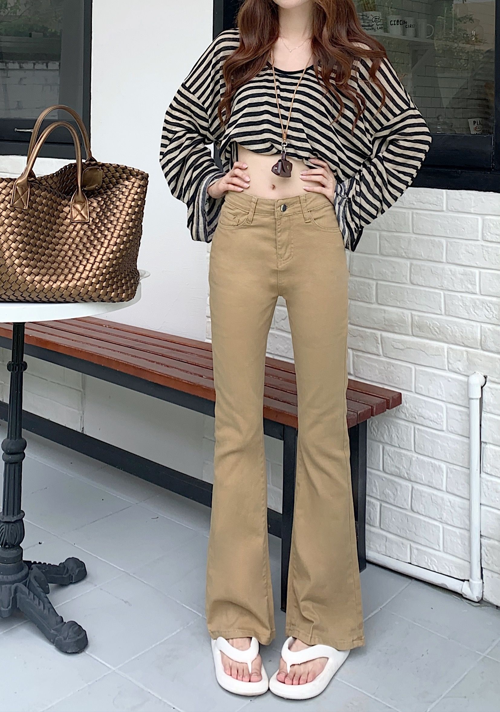卡其色九分裤