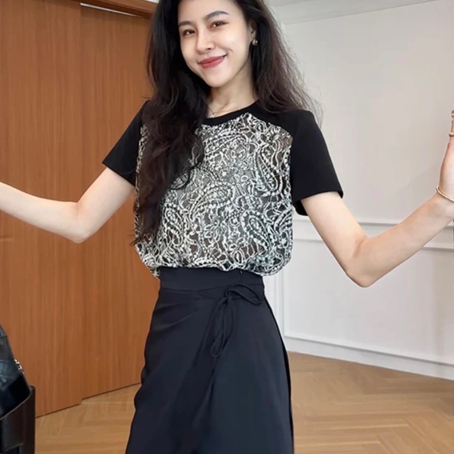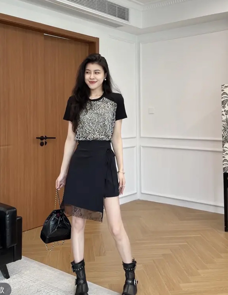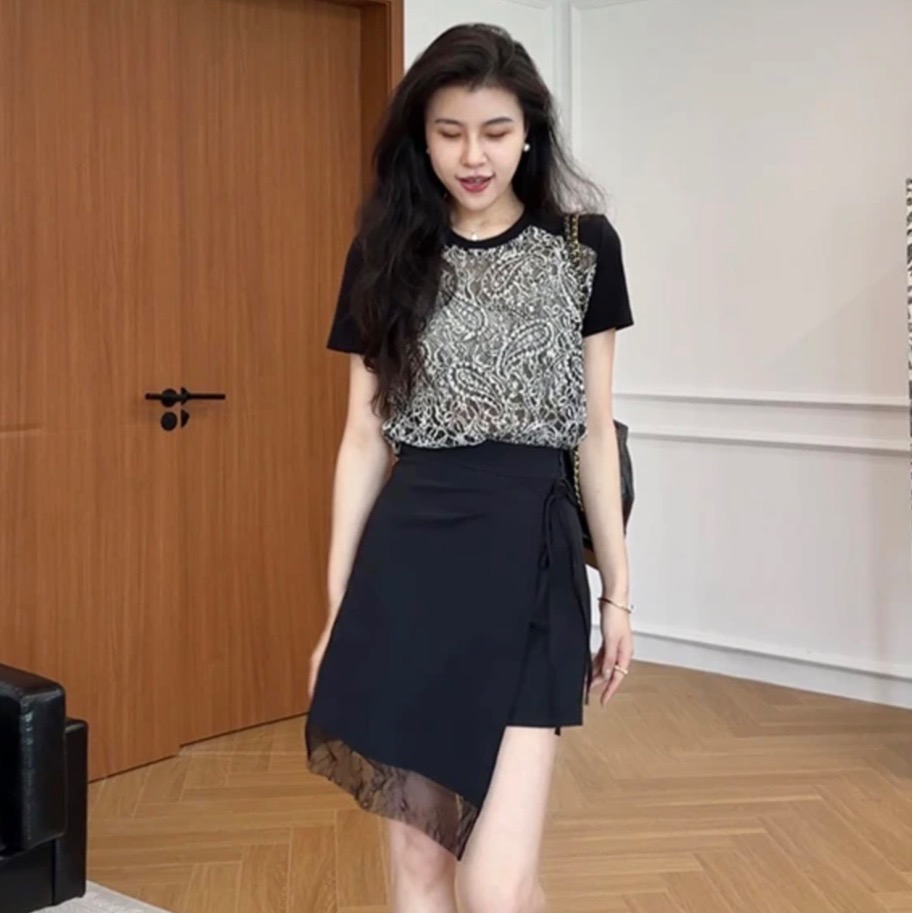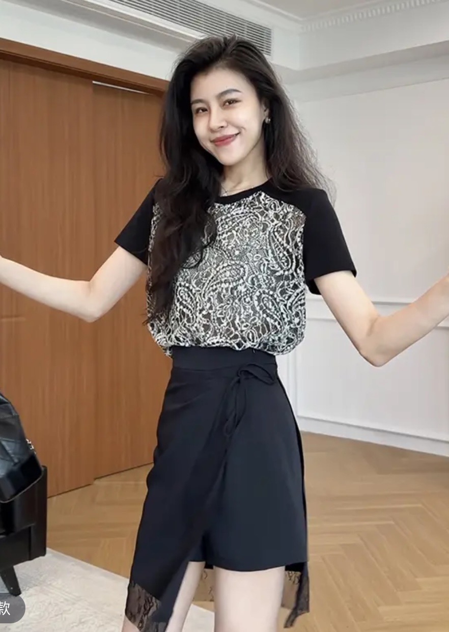 BY15574# 张阿星晚风清梦法式复古钩花撞色T➕显瘦裙裤 服裝批發女裝批發服飾貨源