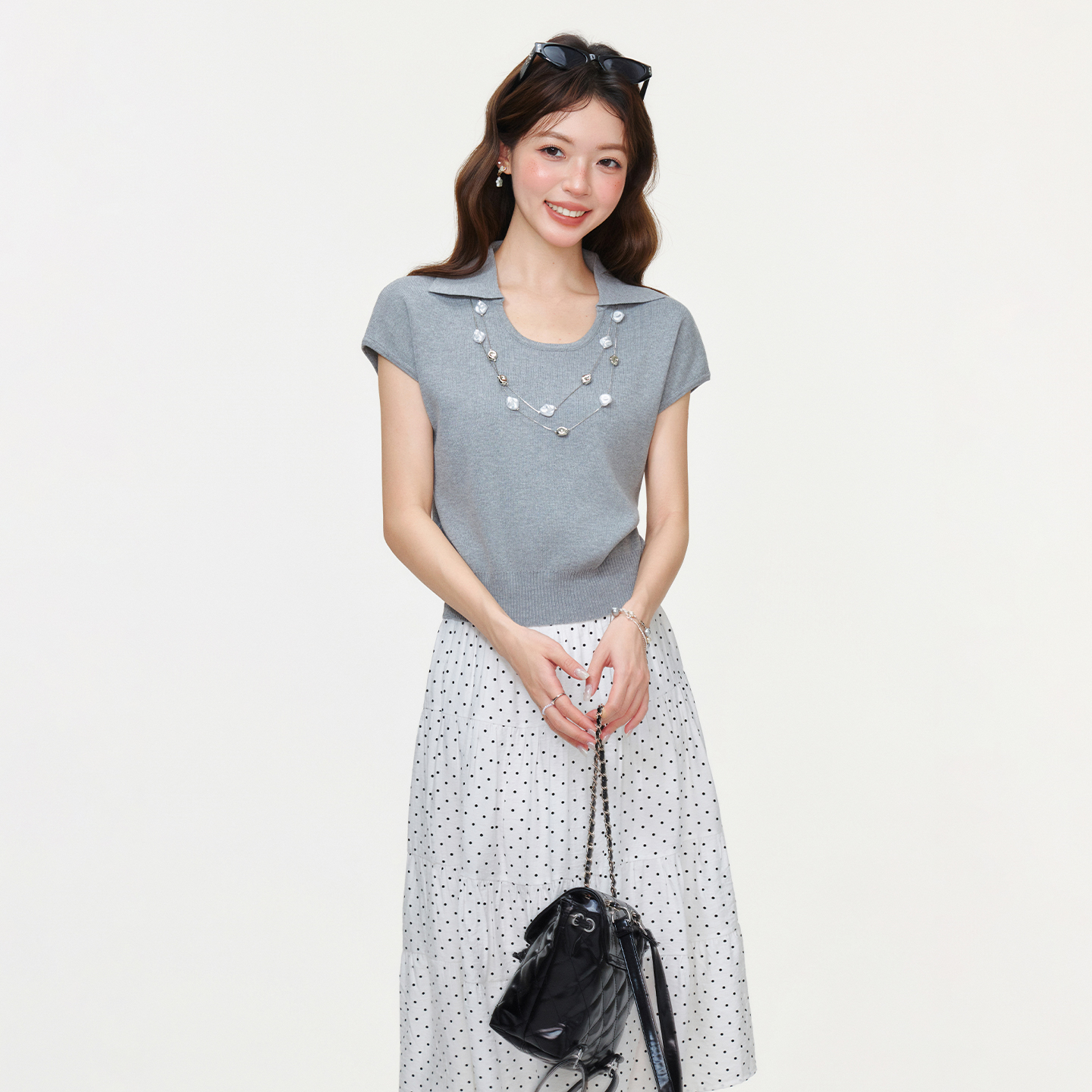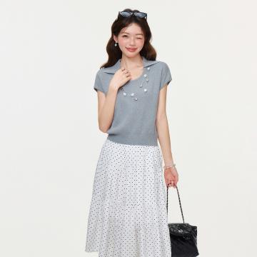 BY15596# 灰色u领针织正肩短袖t恤女新款夏修身短款小个子上衣 服裝批發女裝批發服飾貨源