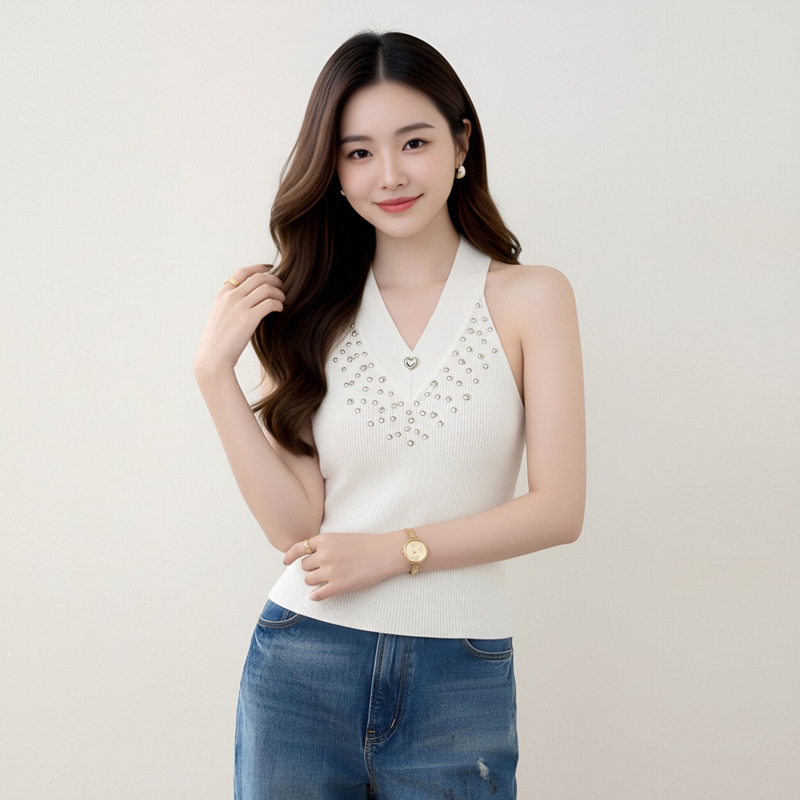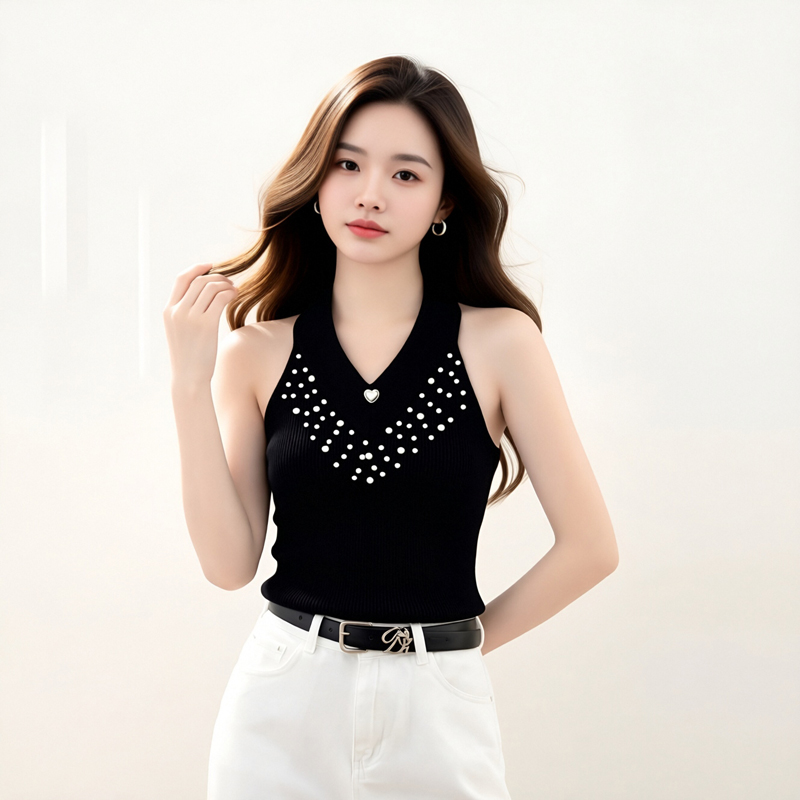 BY18588# 韩系碎钻V领内搭针织背心女夏季修身显瘦短款上衣 服裝批發女裝批發服飾貨源