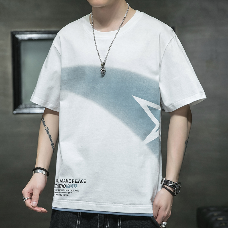 FA42302# 印花t恤短袖男纯棉宽松潮牌夏季加肥加大码半袖胖子休闲上衣服丅 男装批发