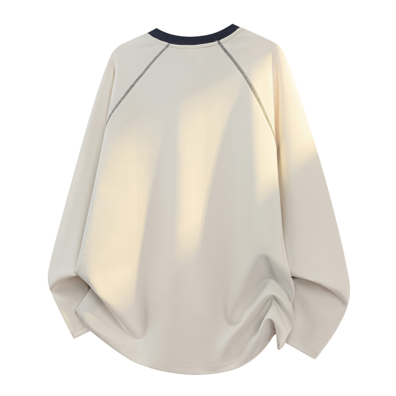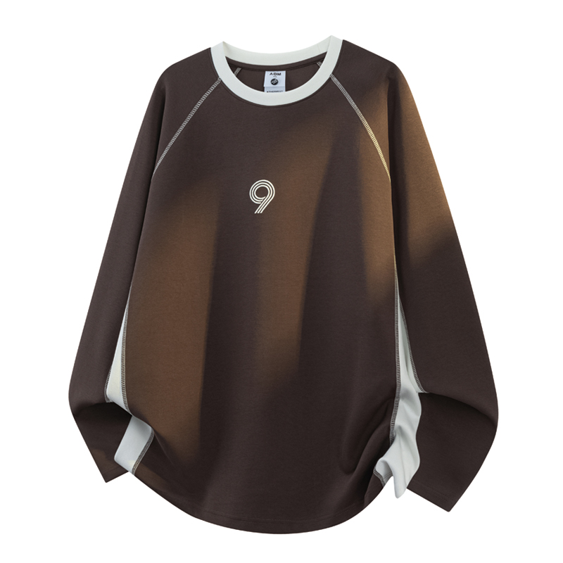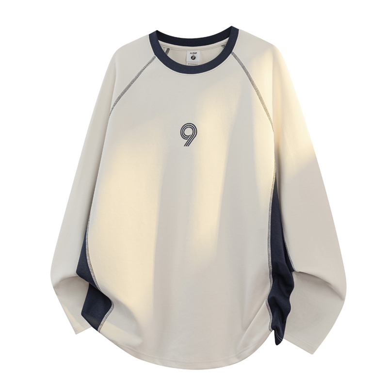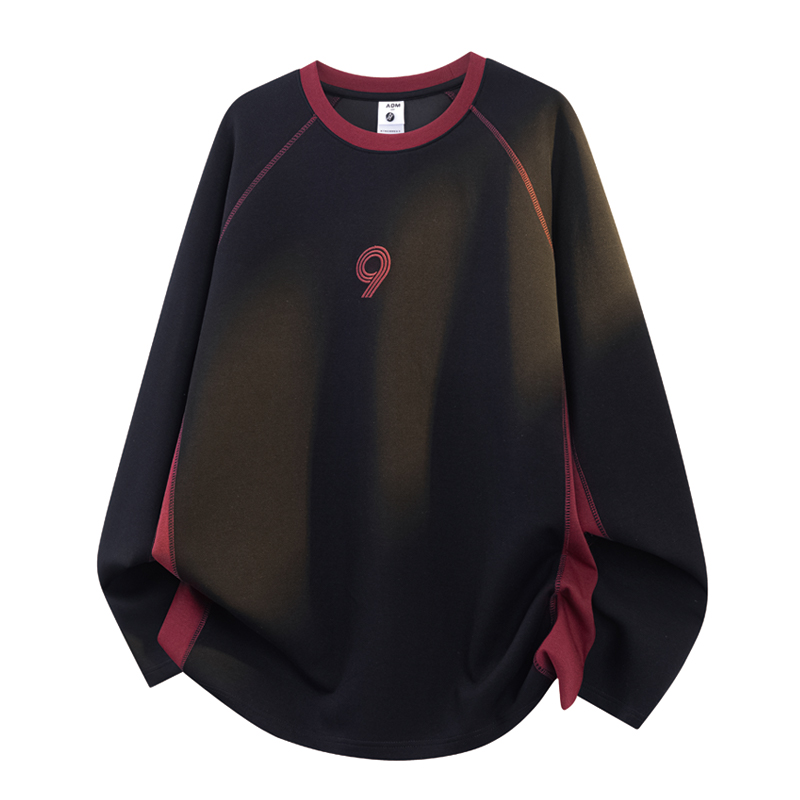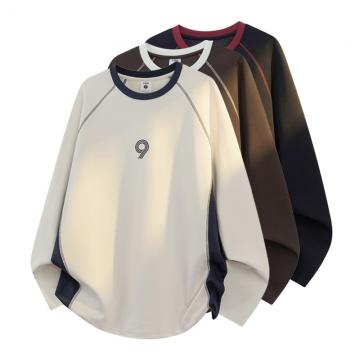FA42342# 25秋季新款男士时尚潮牌宽松辑明线拼色套头卫衣长袖T恤男女同款 男装批发