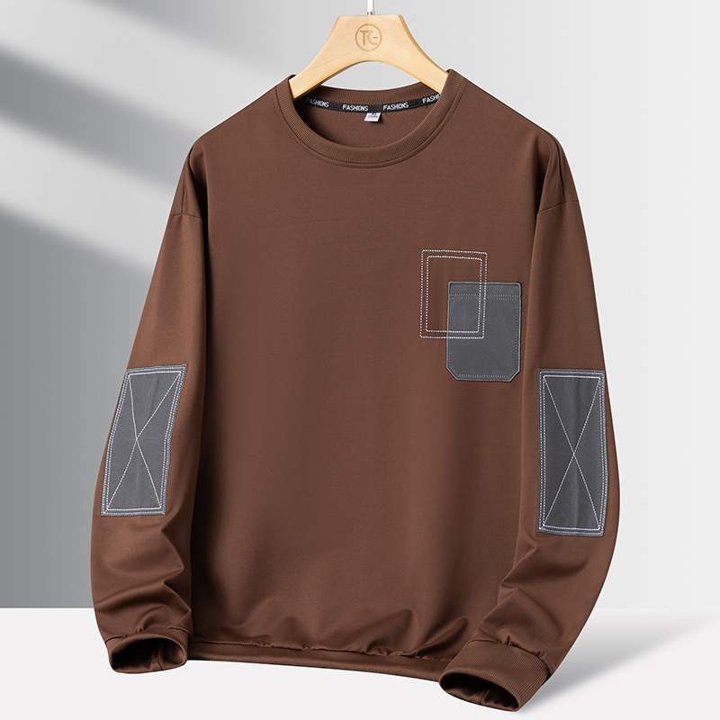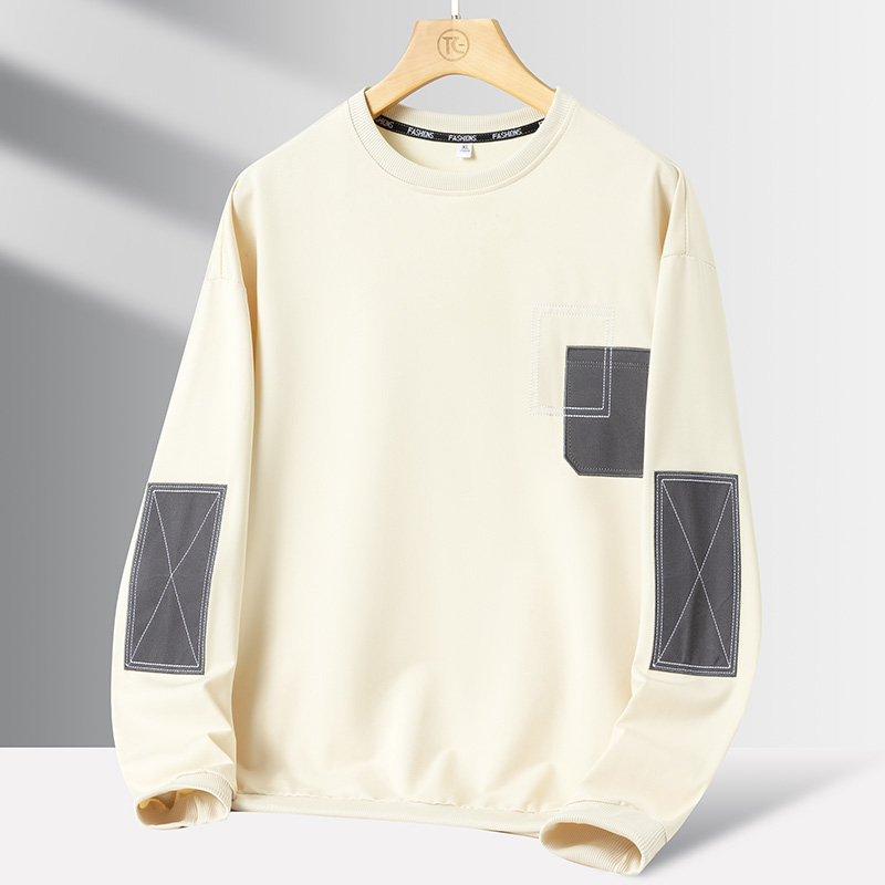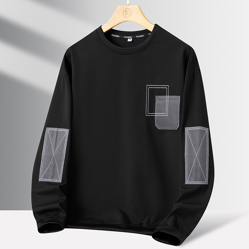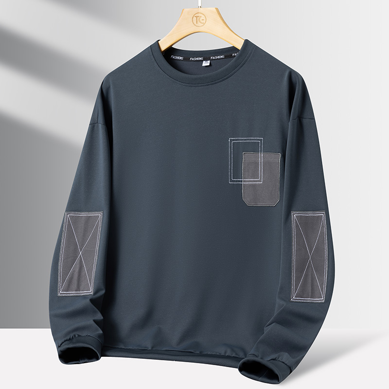 FA42357# 卫衣男士仿棉春秋季新款圆领长袖t恤休闲男装时尚百搭打底衫拼接口袋卫衣男 男装批发