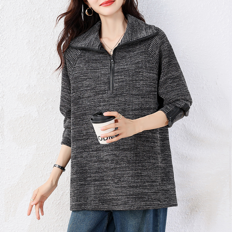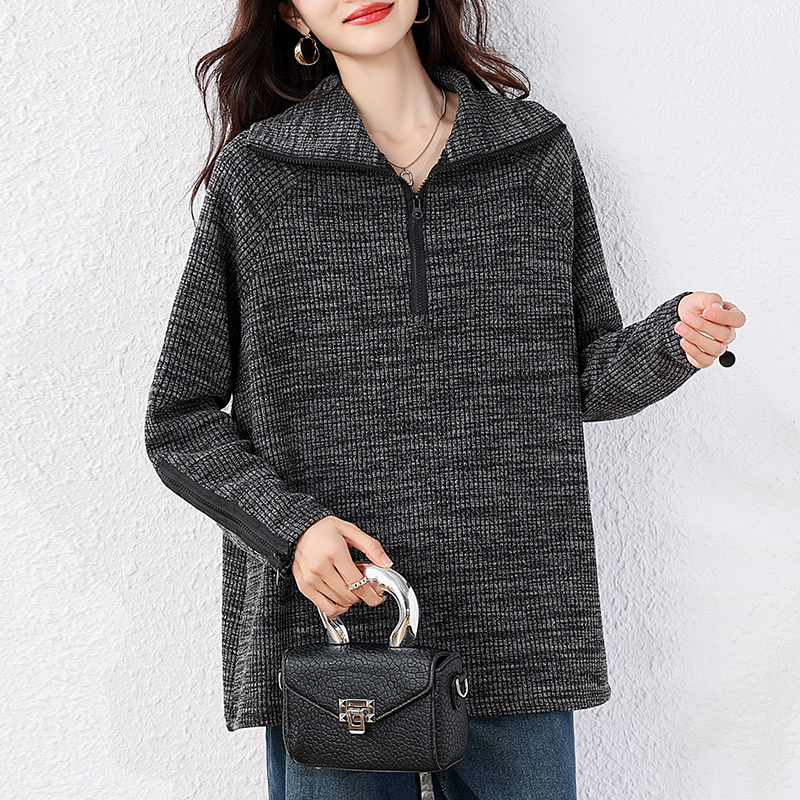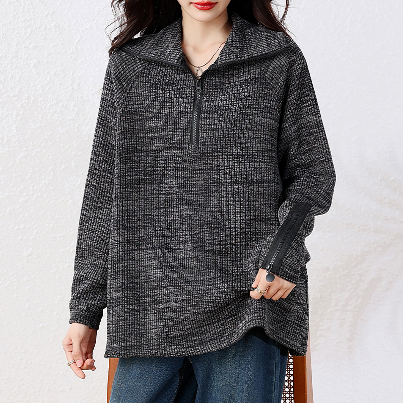 FA45656# 大码女装胖mm秋冬设计感小众高领百搭半拉链高定版毛衣针织衫 服裝批發女裝批發服飾貨源
