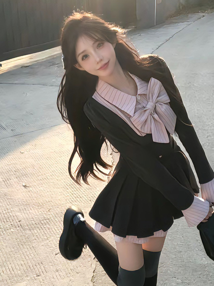 FA45758# 失落乐园纯欲短裙春秋季收腰显瘦甜美学院风撞色拼接百褶连衣裙女 服裝批發女裝批發服飾貨源