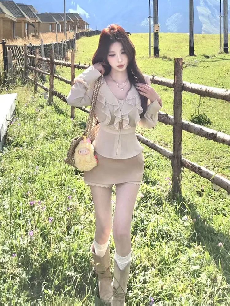 FA45760# 小众设计感女时尚套装气质复古风纯欲辣妹风 服裝批發女裝批發服飾貨源