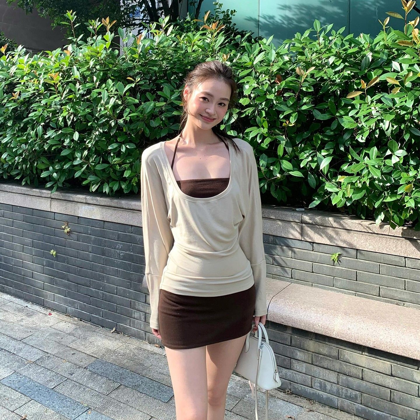 FA45762# 秋冬季吊带连衣裙子一整套装女新款初冬韩系包臀裙超火两件套 服裝批發女裝批發服飾貨源