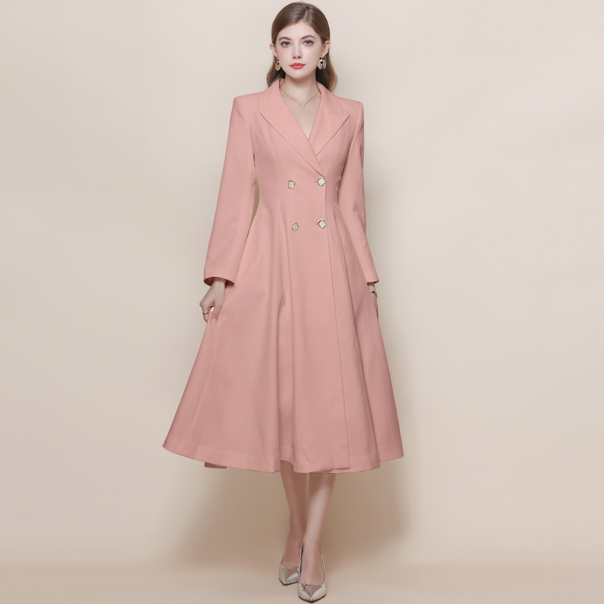FA45810# 法式复古气质收腰显瘦双排扣大摆中长款风衣外套连衣裙 服裝批發女裝批發服飾貨源
