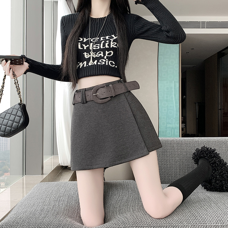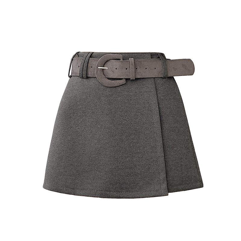 FA45898# 韩版秋季新款时髦洋气百搭显瘦纯色高级感配腰带半身裙短裙 服裝批發女裝批發服飾貨源