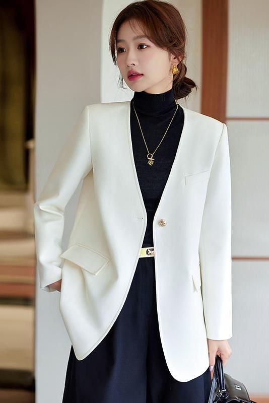 FA46022# 白色西装外套女设计感小众新款春秋高级感炸街休闲廓形小西服 服裝批發女裝批發服飾貨源