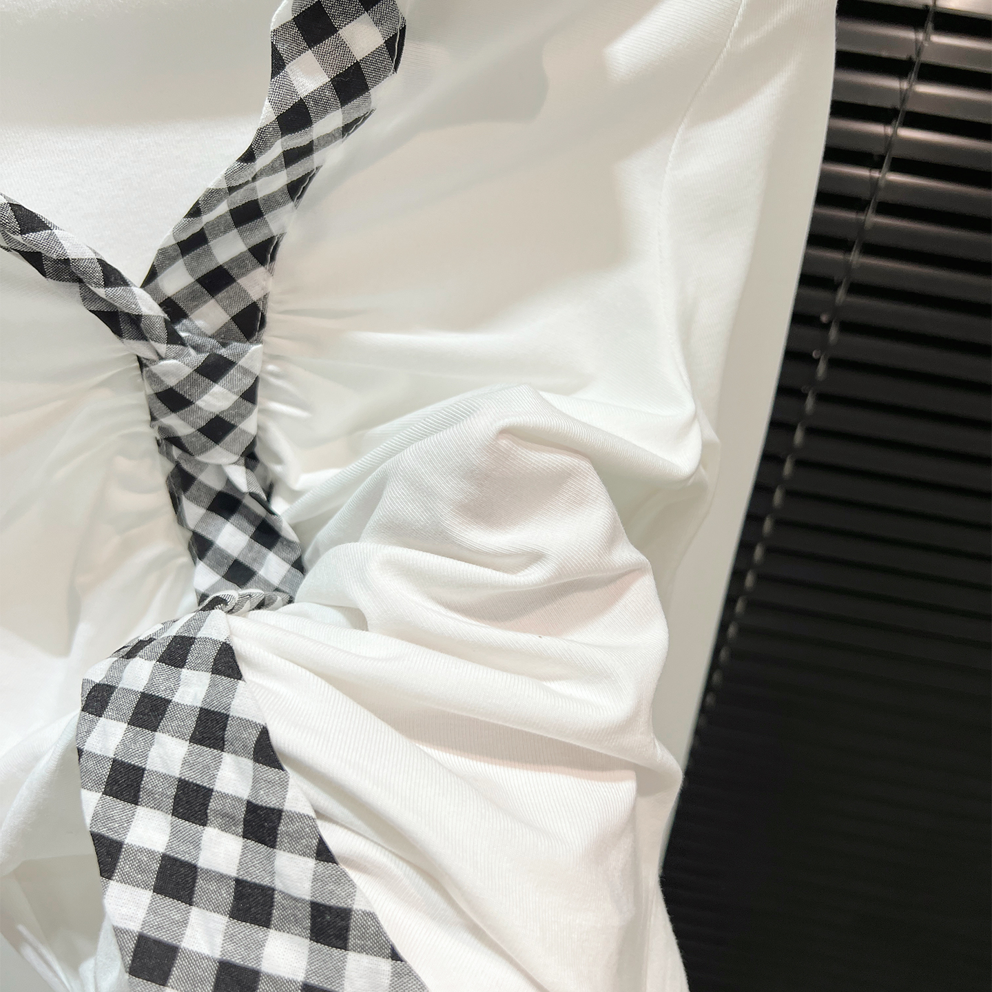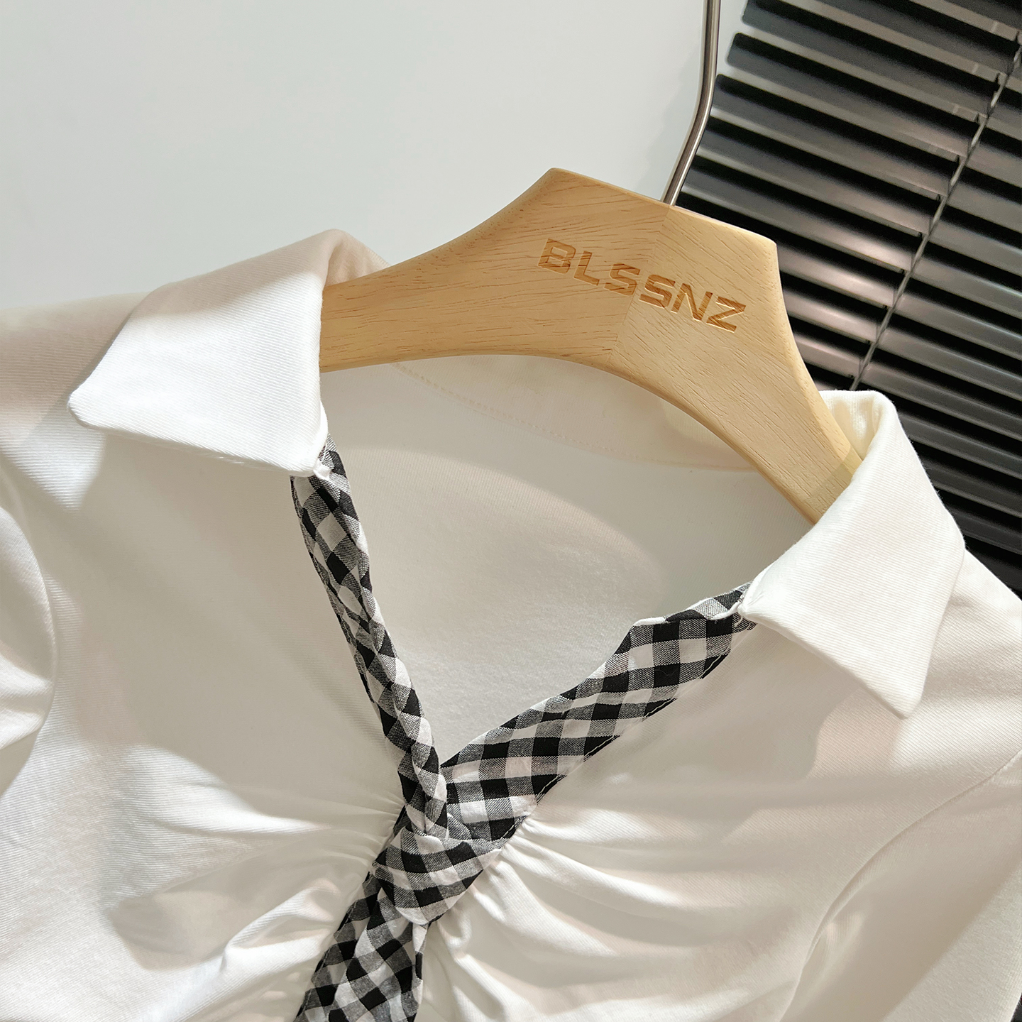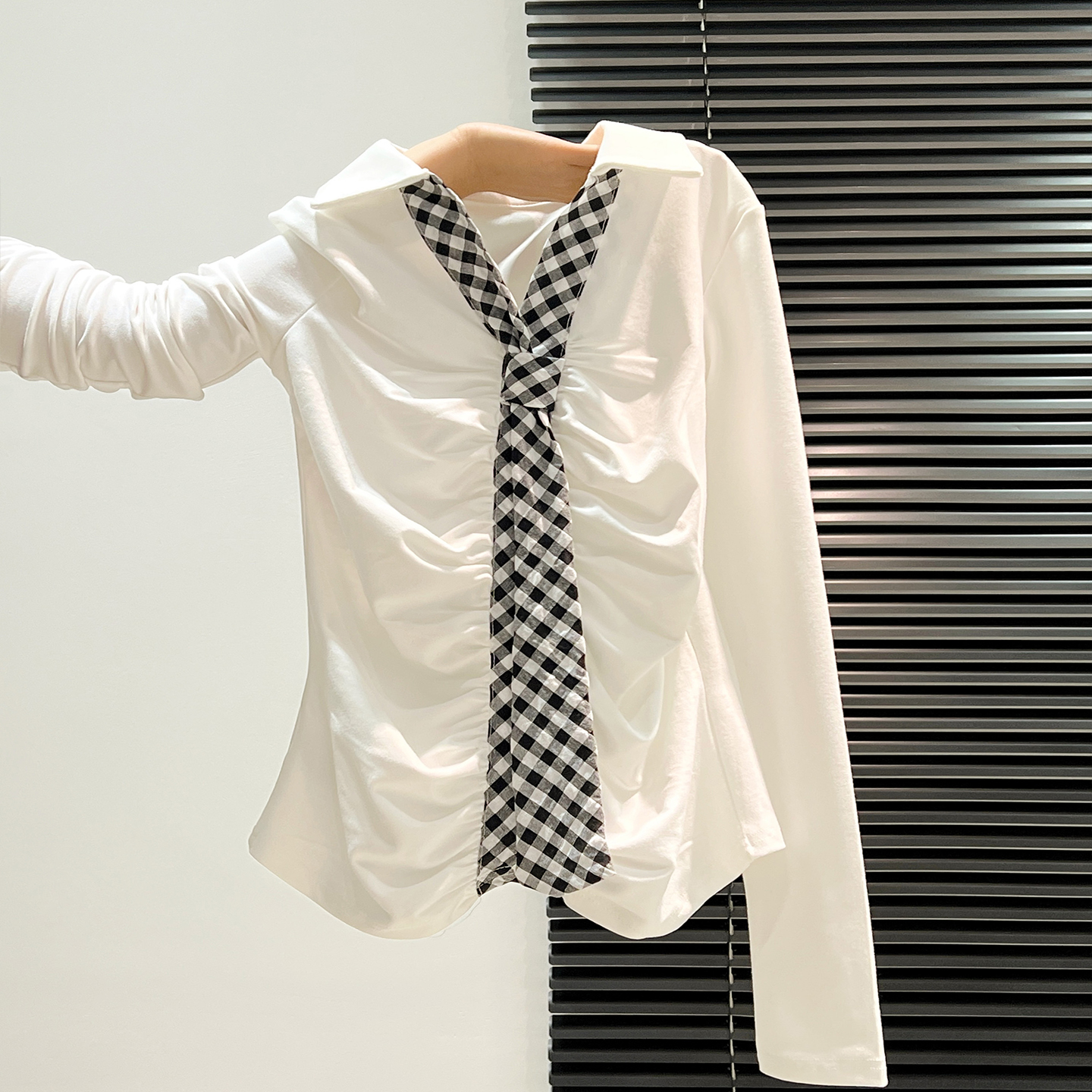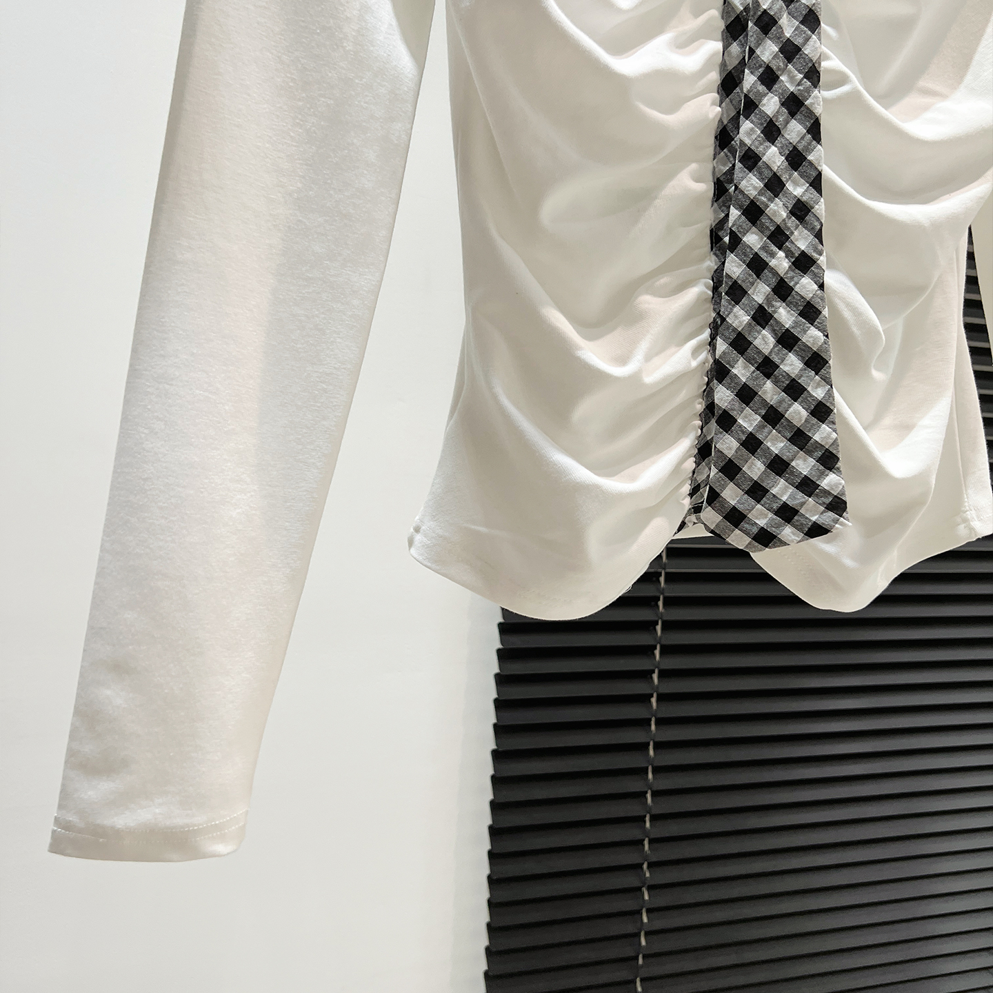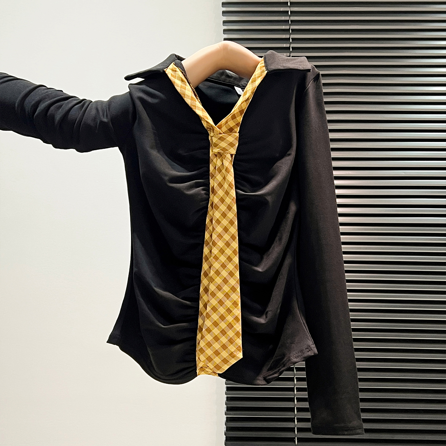 FA46025# 黑底搭黄格领带早秋褶皱设计复古吸睛个性穿搭出街 服裝批發女裝批發服飾貨源