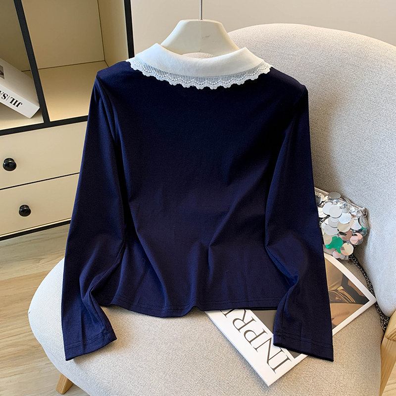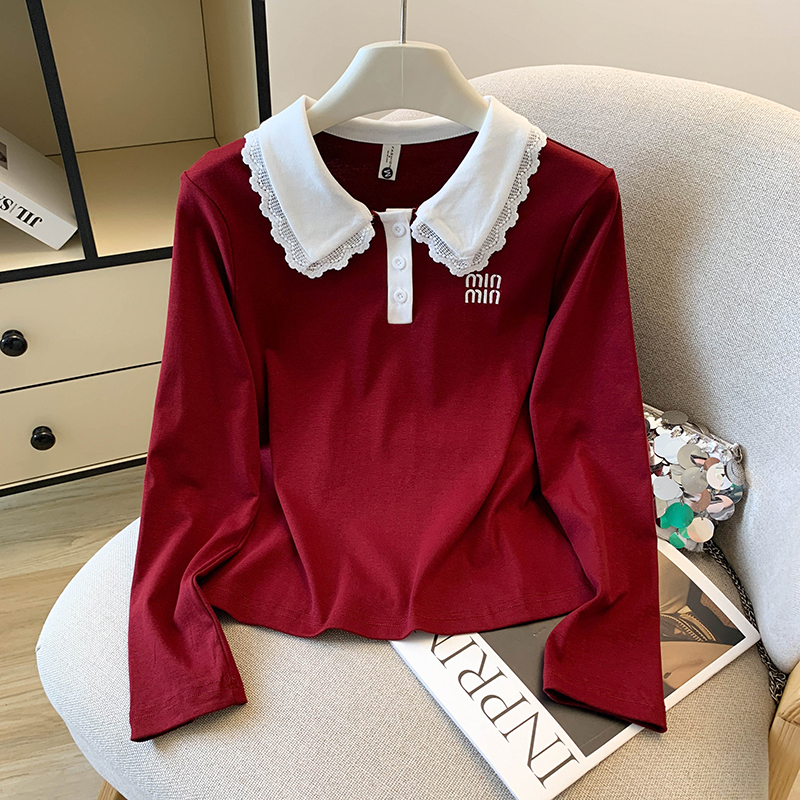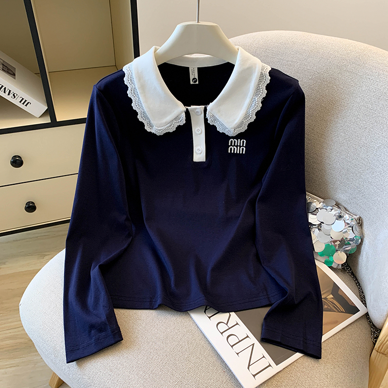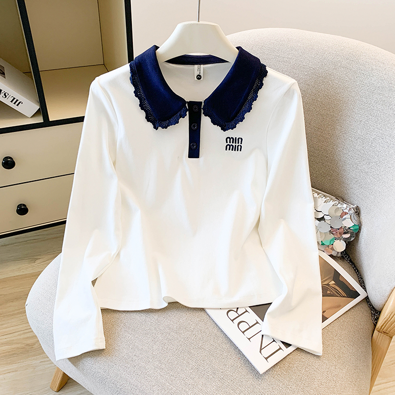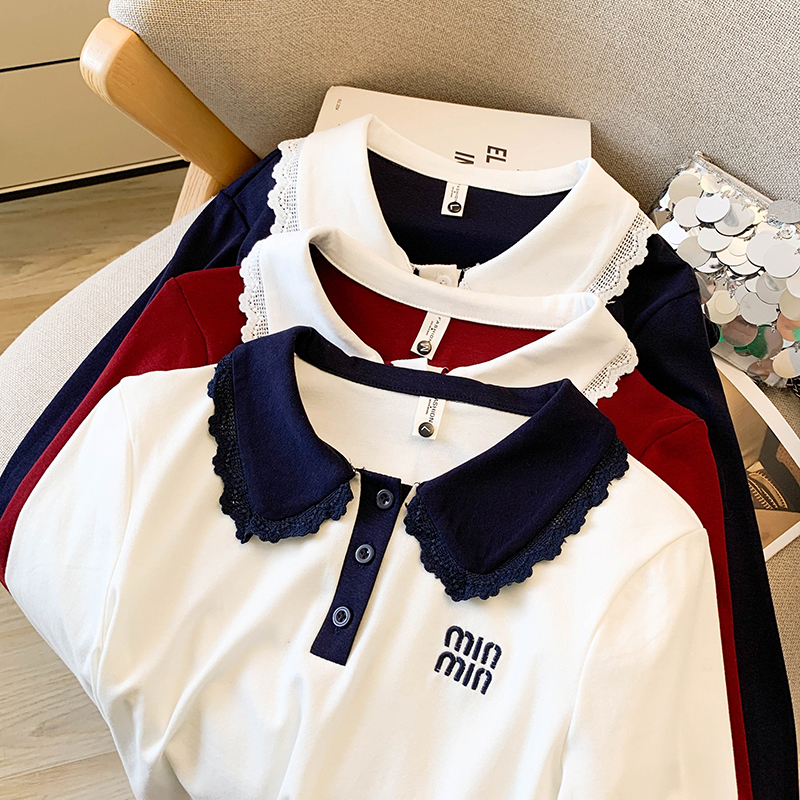 FA46070# 秋季新款可爱娃娃领纯欲风短款百搭修身短袖T恤刺绣字母 服裝批發女裝批發服飾貨源