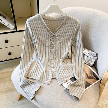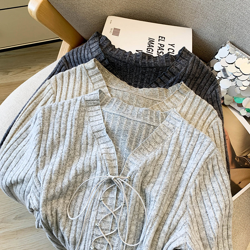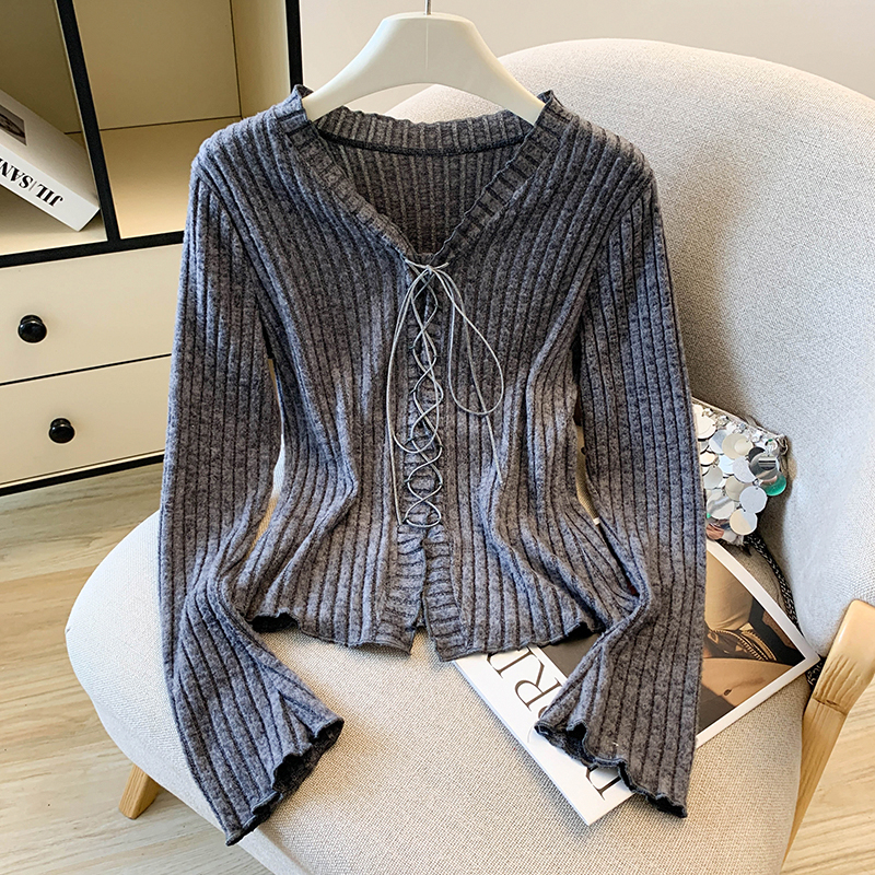 FA46072# 美式复古绑带设计感长袖T恤女早秋上衣肌理感掐腰显瘦内搭打底衫 服裝批發女裝批發服飾貨源
