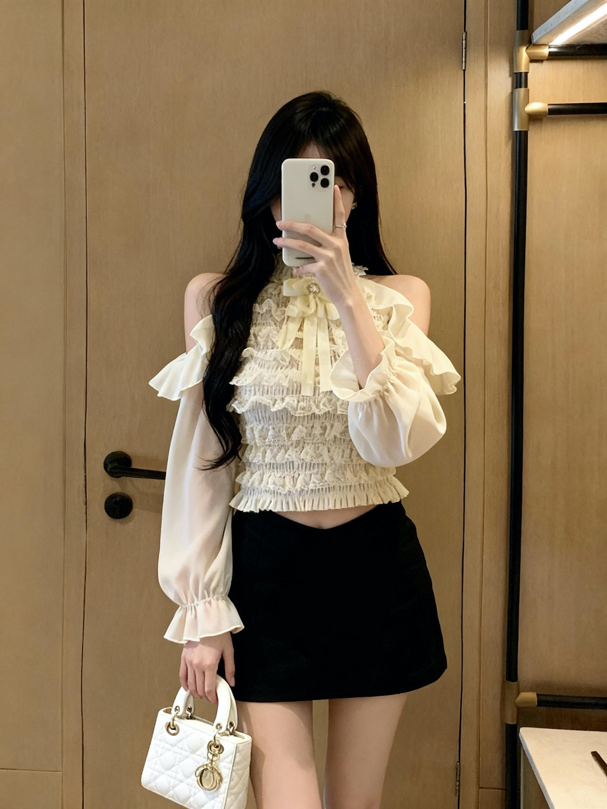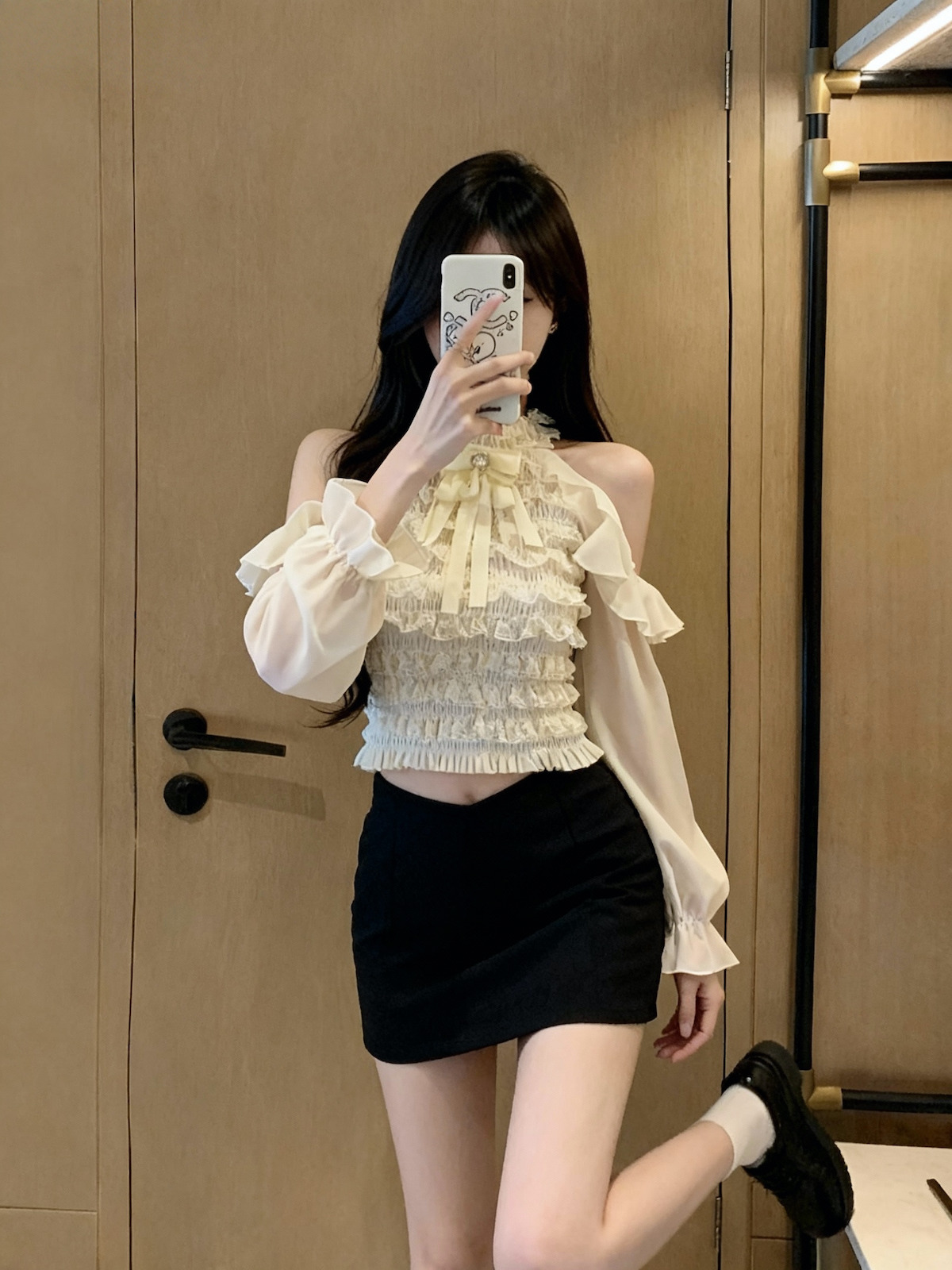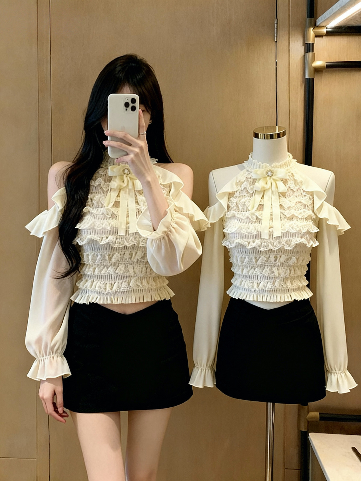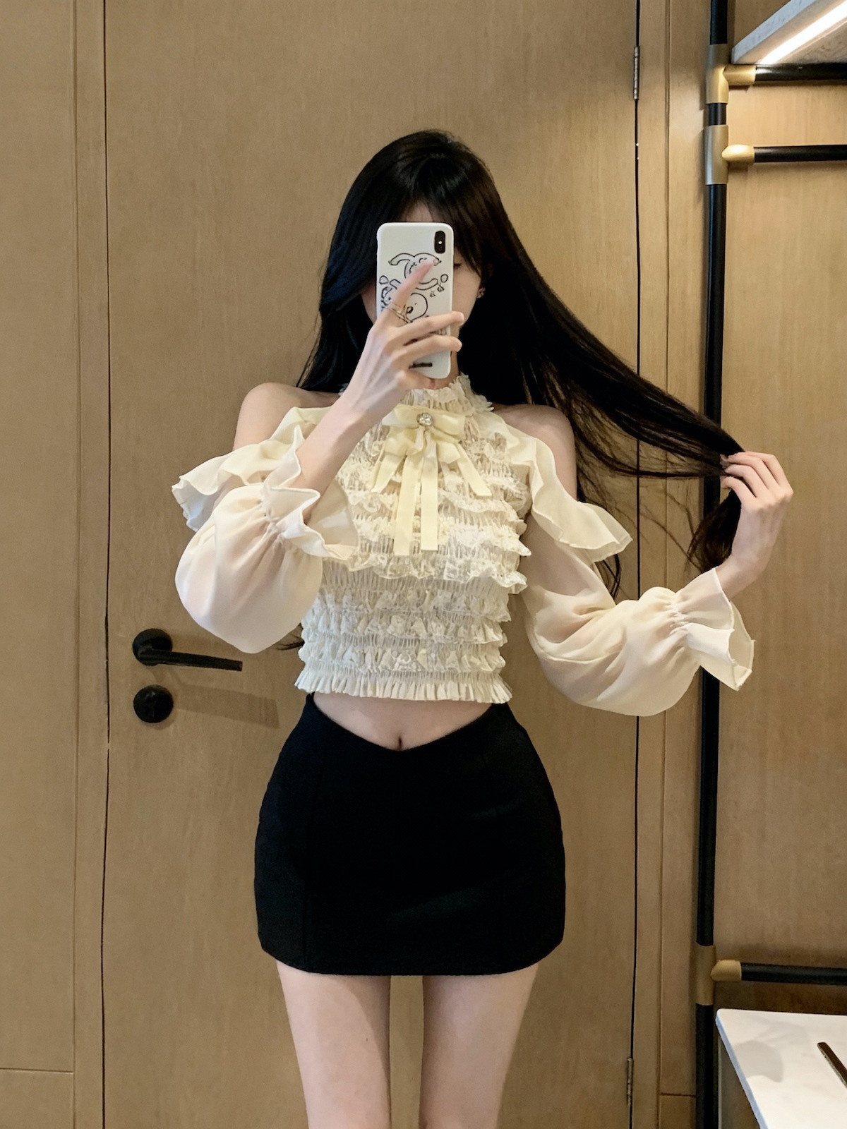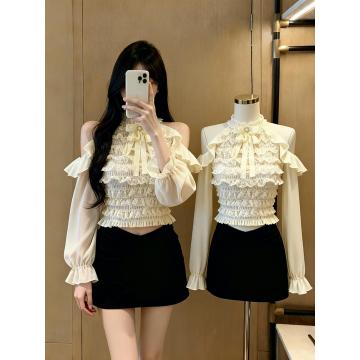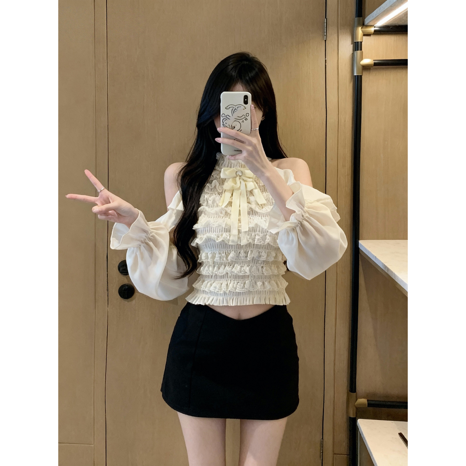 FA46273# 秋季新款纯欲风设计感小众蝴蝶结长袖修身显瘦气质上衣女 服裝批發女裝批發服飾貨源