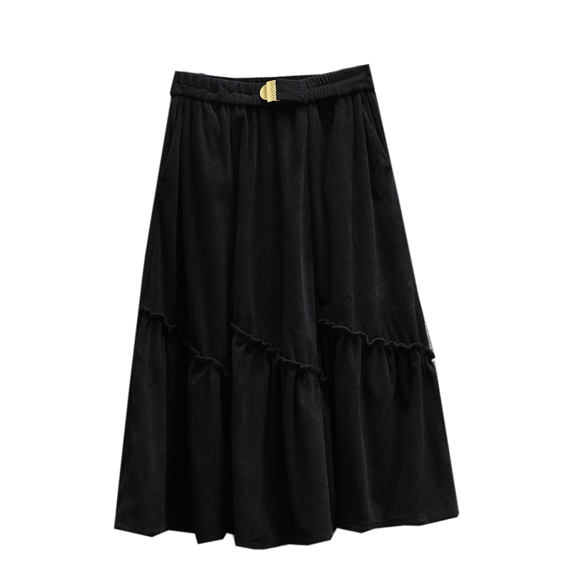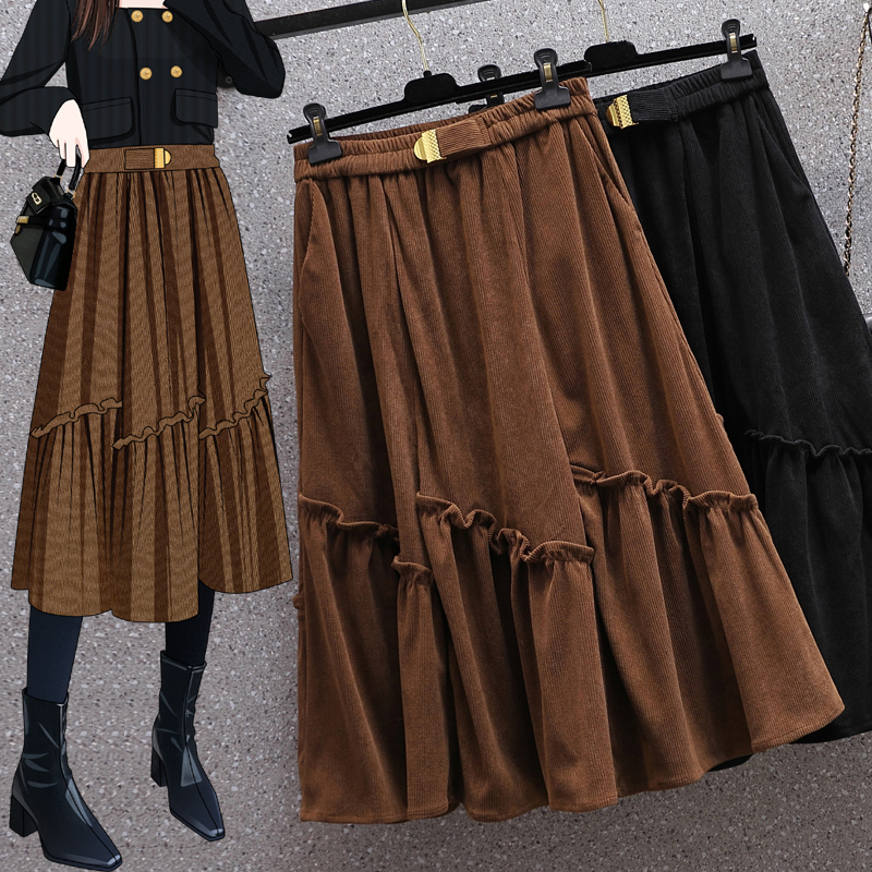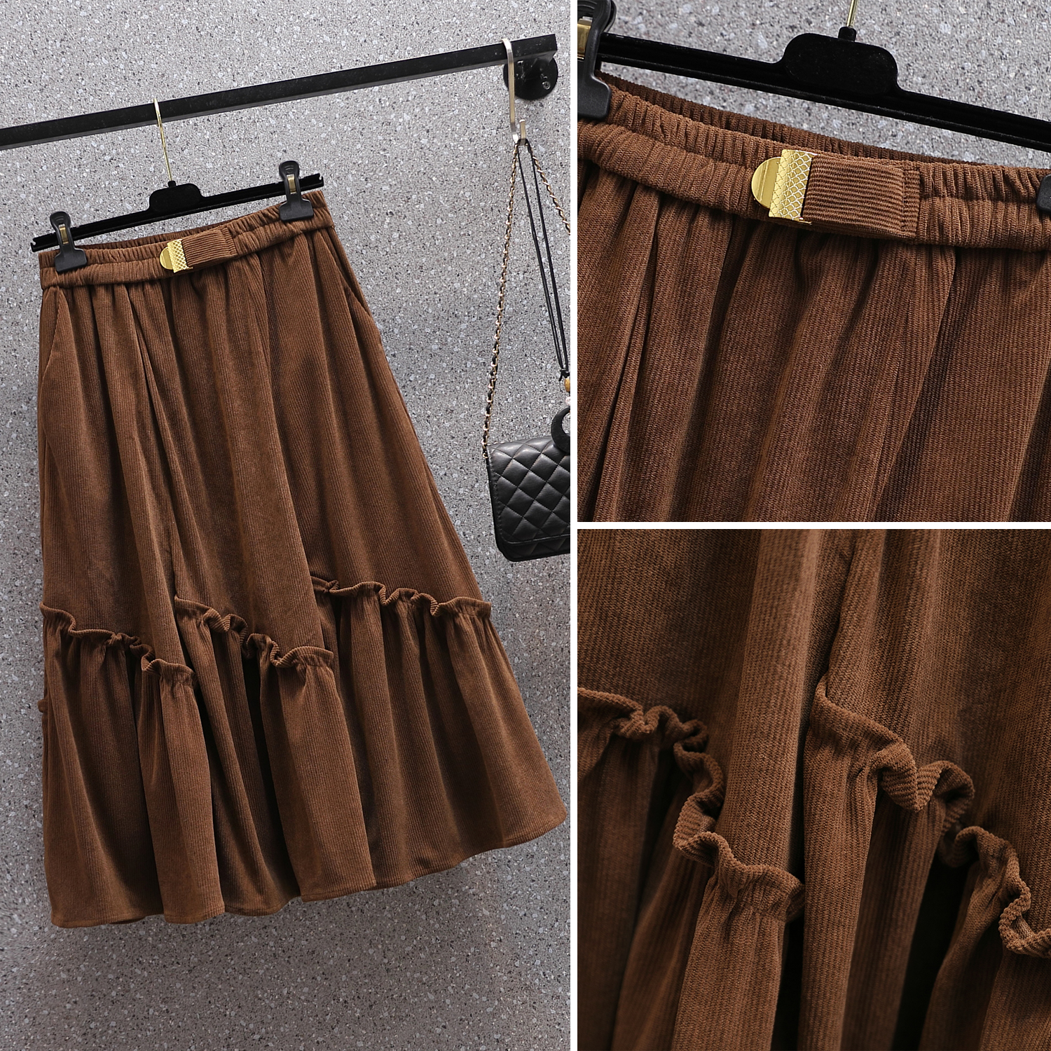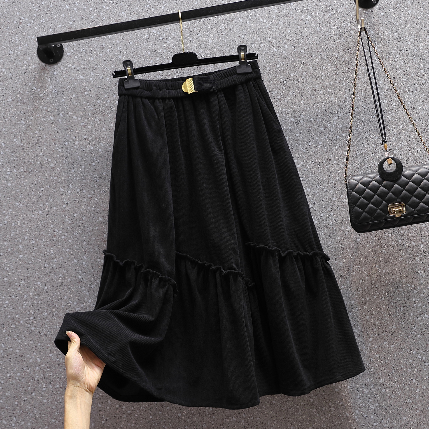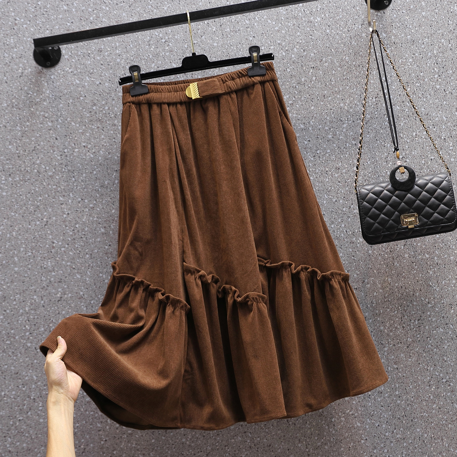FA46278# 秋冬大码不规则灯芯绒长款半身裙女高腰胖MM打底裙子大摆伞裙 服裝批發女裝批發服飾貨源