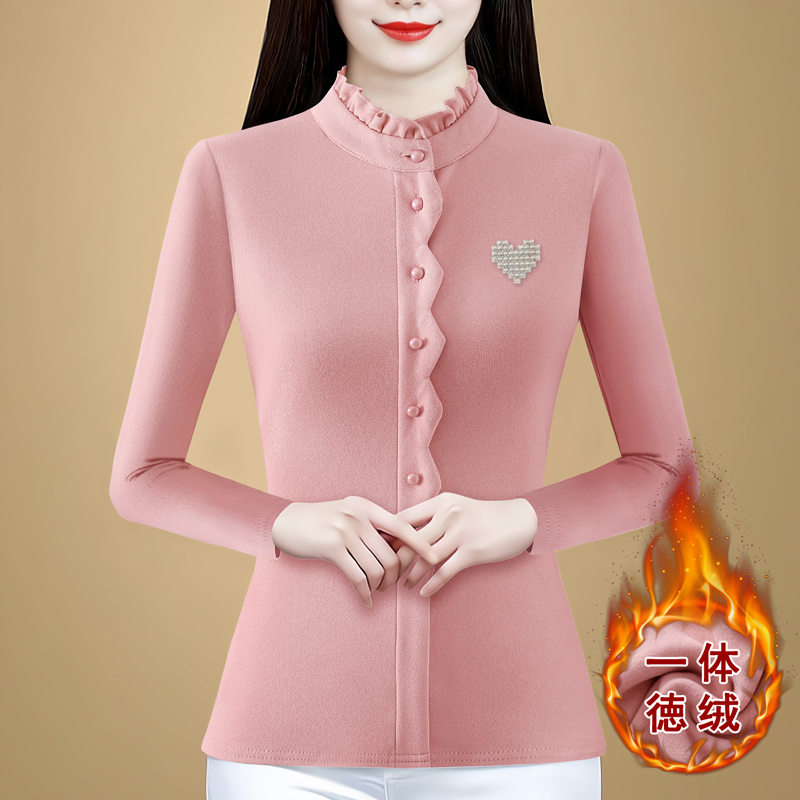 FA46344# 秋冬季新品时尚气质百搭长袖绣花套头加厚打底衫减龄上衣 服裝批發女裝批發服飾貨源