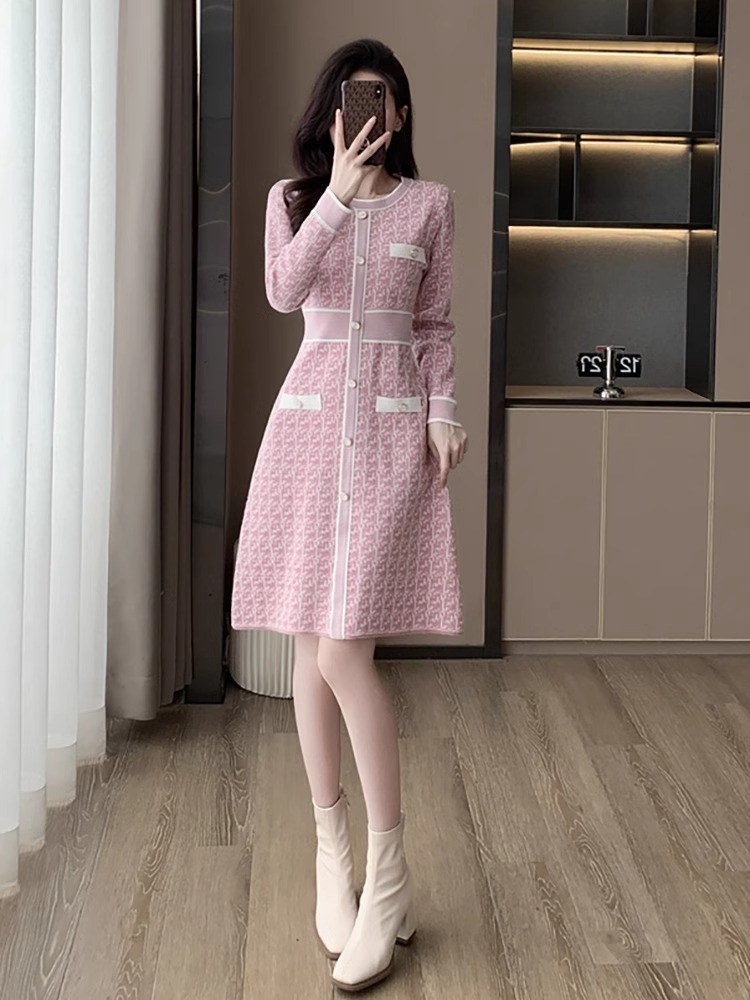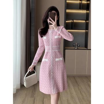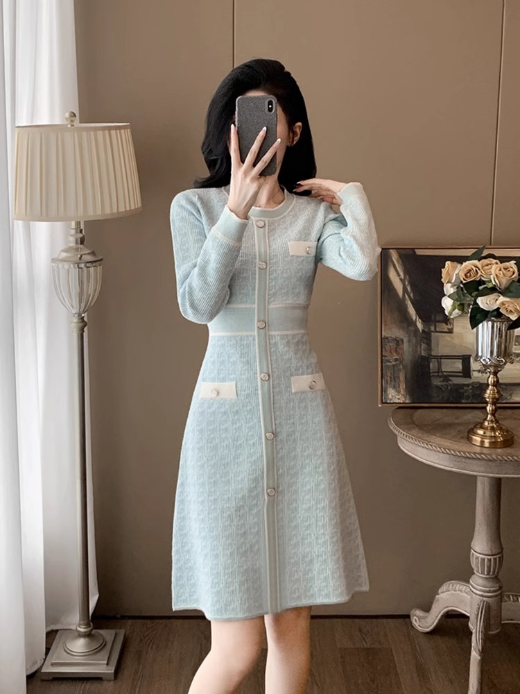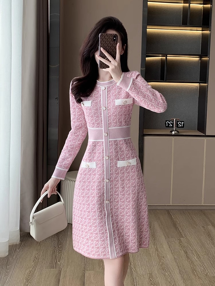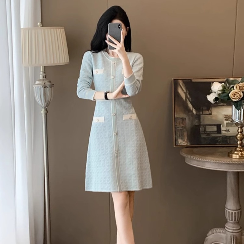 FA46372# 秋冬新款名媛小香风时尚针织高腰连衣裙长袖内搭打底毛衣裙 服裝批發女裝批發服飾貨源