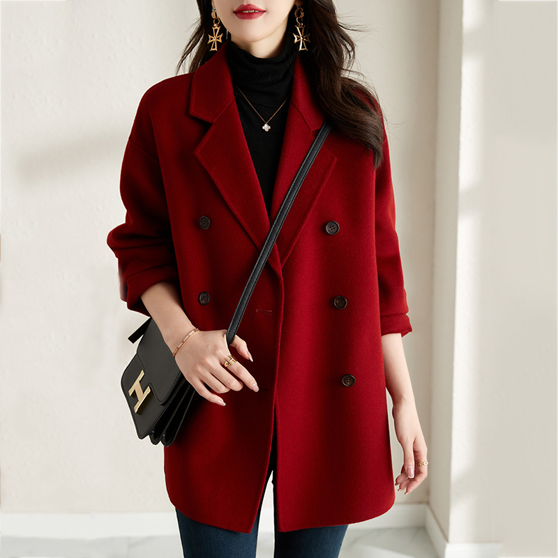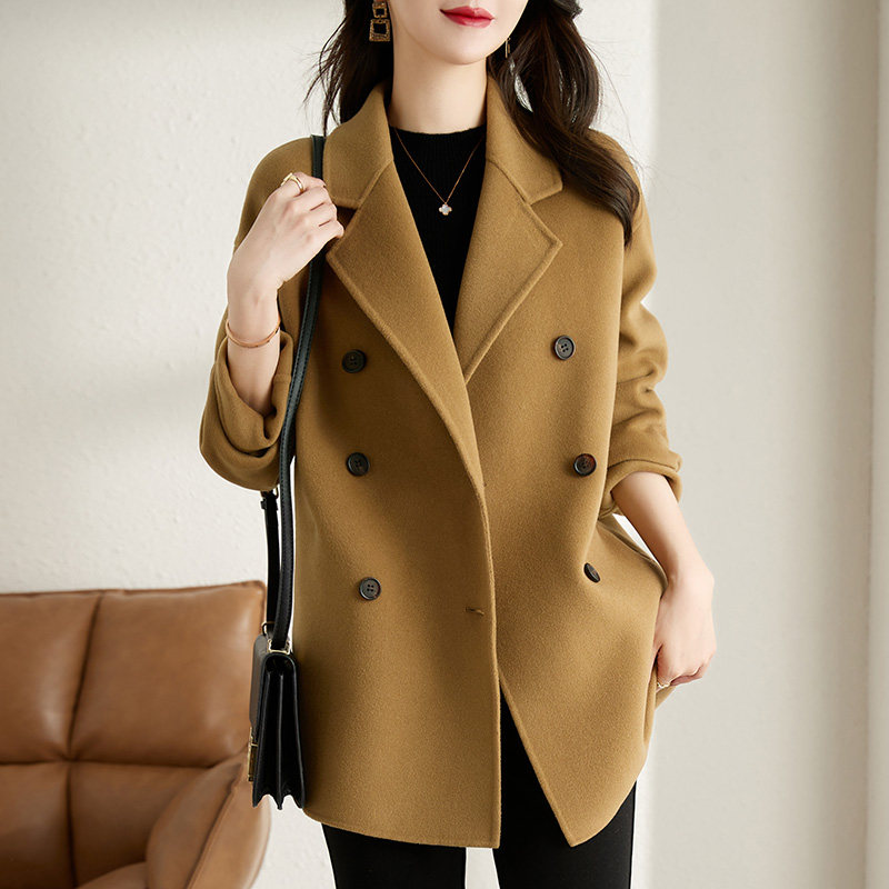 FA46378# 秋冬新款韩版呢子大衣女双排扣西装领显瘦毛呢外套小个子上衣 服裝批發女裝批發服飾貨源